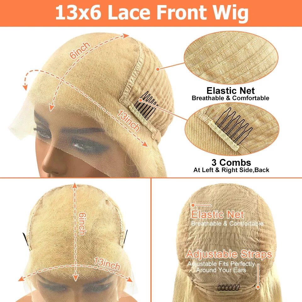 250% Density Body Wave Layered Wig Green Pink Brazilian Human Hair Glueless Honey Blonde 13x4 HD Lace Front Wig Ready To Wear Pre Plucked Natural Hairline.Can Restyle By Yourself 613 lace frontal wig colored human hair wig Cap Size: Medium(22.5inch) Lace Color:Transparent Lace The cap has 4 combs (front , side and back) and straps inside!