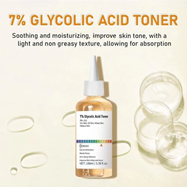 Glycolic Acid Serum for Face 7% Strength - Extra Large Size (3.88Oz) New Formula US Warehouse - FREE & FAST Shipping in US Product Description: These statements have not been evaluated by the FDA. This product is not intended to diagnose, treat, cure, or prevent any disease or health condition. Exfoliating Power: Experience the transformative effects of our 7% Glycolic Acid Toner, designed to gently exfoliate the skin, revealing a perfect and more radiant complexion while reducing the appearance of fine lines and uneven texture. Pore Minimizer: Formulated to shrink pores, this toner is your go-to solution for achieving tighter and more refined skin, making it an essential part of your skincare routine. Soothes and Hydrates: Designed with a hydrating formula, the 7% Glycolic Acid Toner not only soothes skin irritation but also delivers essential moisture, leaving your skin feeling refreshed and comfortable. Improve Blemishes and Acne: Target blemishes and acne effectively with our toner, which helps to clear and prevent breakouts while promoting an even skin tone for a clearer, healthier appearance. Anti-Aging Benefits: Incorporate anti-aging skincare into your regimen with our 7% Glycolic Acid Toner, which works to improve skin texture and diminish fine lines for a youthful glow. Feedback: 1.Any question for your order, please contact us in time, we will reply to you within 24 hours and give you a satisfactory answer. 2.If you are satisfied with our products and services, hope to take up your a little precious time to leave feedback reviews for our products.Thanks! 3.Your satisfaction is our effort. Welcome to order again! Have a great day! Our Policy: 100% Satisfaction Guarantee 20% of restocking fee will be charged for return item