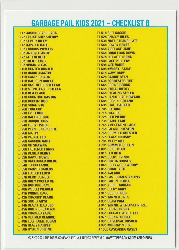 Gnarly Niles #52b Topps Garbage Pail Kids GPK 2021 Go On Vacation personal stock images centering of cards may vary compared to listed images