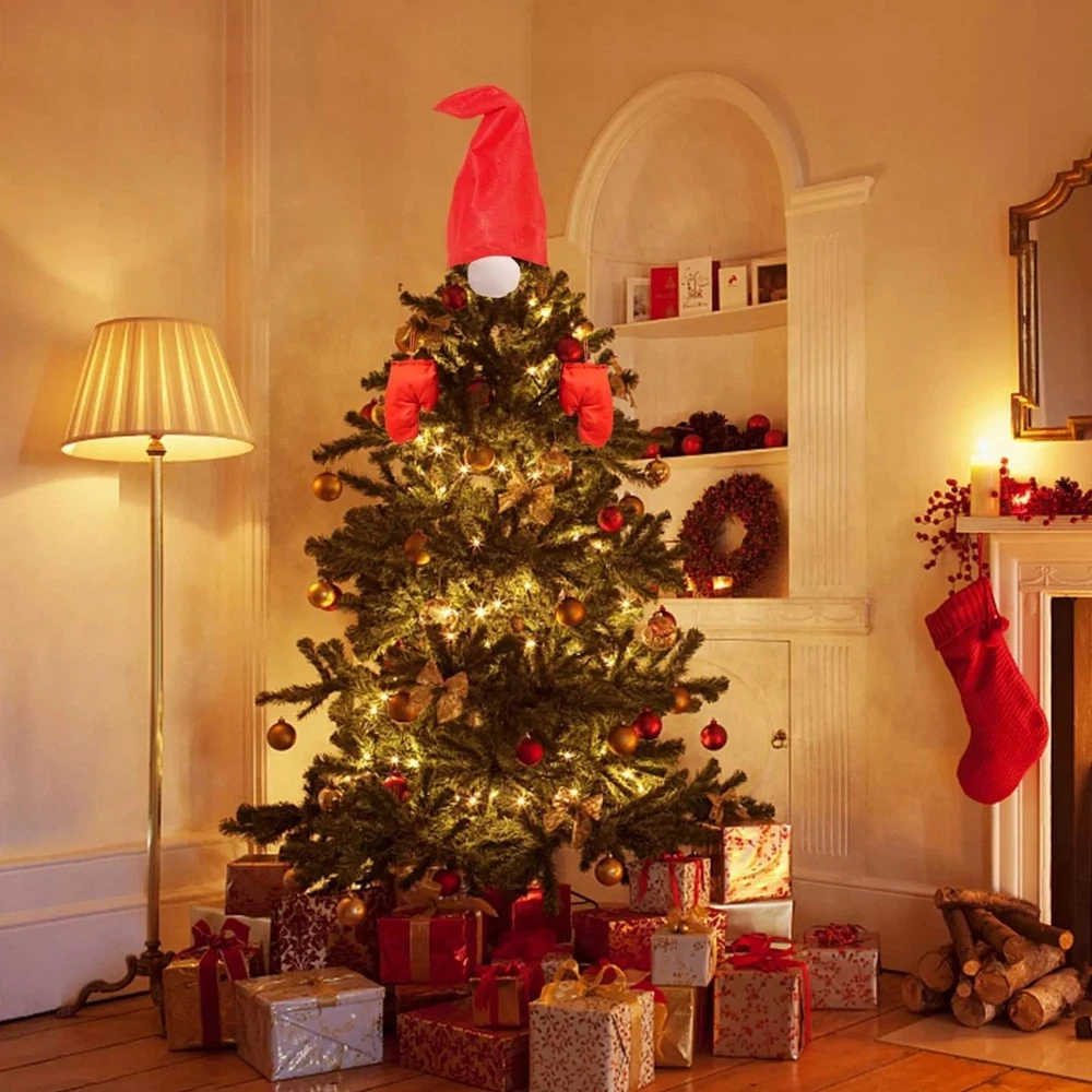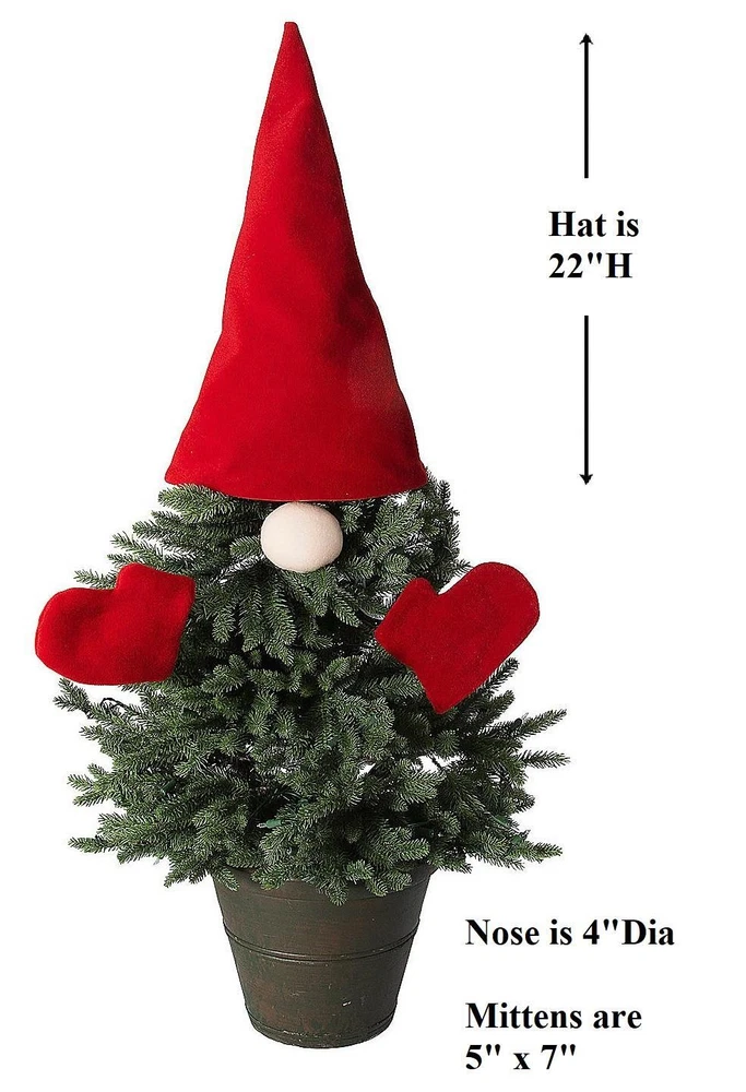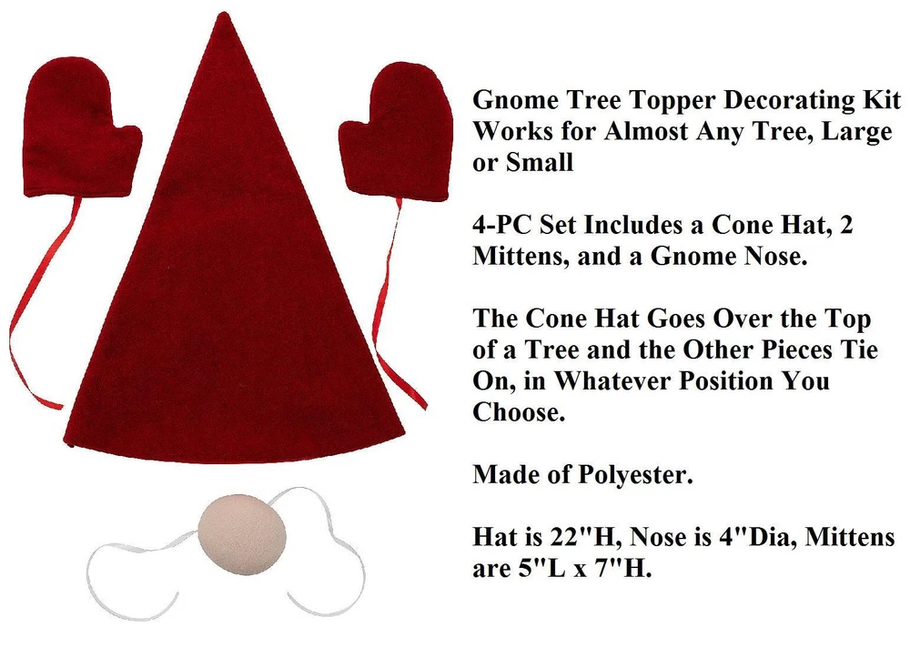 Gnome Hat, Mittens & Nose Christmas Tree Topper Decorating Kit Hat is 22"H #164