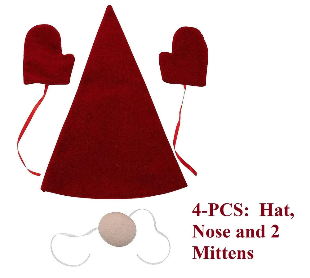 Features: White Nose, Pointy Hat Occasion: Christmas Holiday Season Type: Tree Decorating Kit Item Width: 5 in (Mittens) Size: Small Character Family: Decorative Gnome Accessories Theme: Gnome Santa Holiday Custom Bundle: No UPC: 603305295883 Personalize: No Department: Adult Country/Region of Manufacture: Unknown Number of Items: 4 Character: Gnome Form Shape: Assorted Set Includes: Hat, Mittens, Nose Material: Polyester Item Height: 22 in (Hat) Color: Red and White MPN: AS-ADO-91164 gtin13: 603305295883 Bundle Description: 4-Pieces - Hat, Nose, Mittens Pattern: Solid Brand: NE-AS Item Length: 7 in (Mittens)