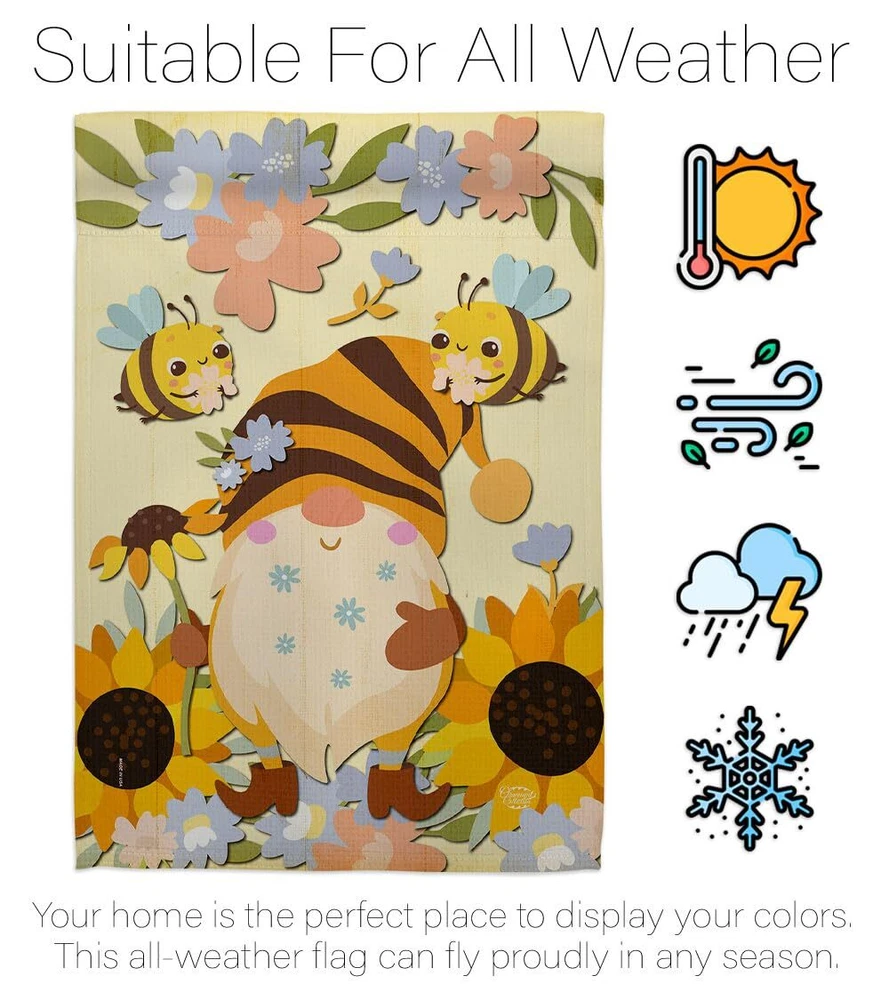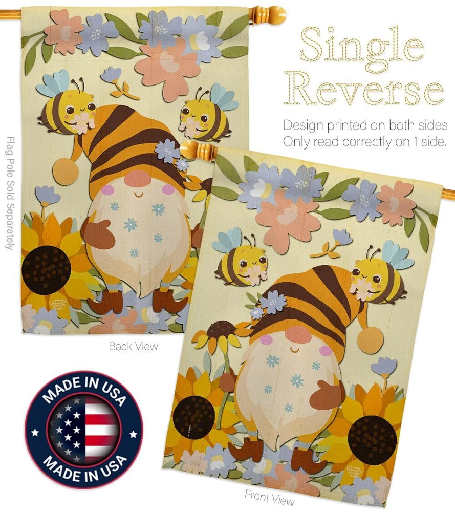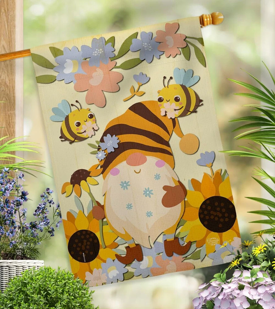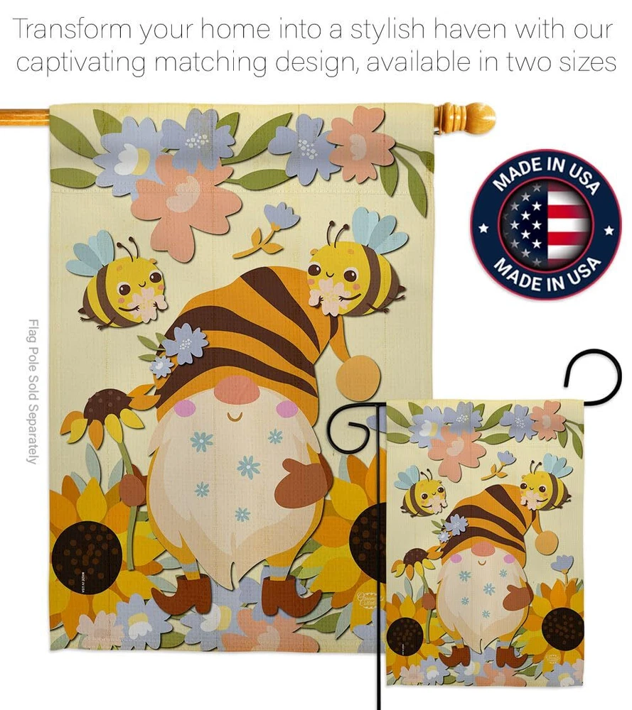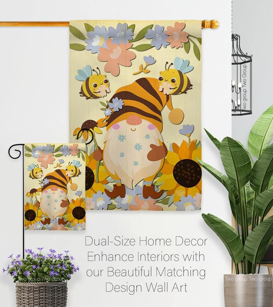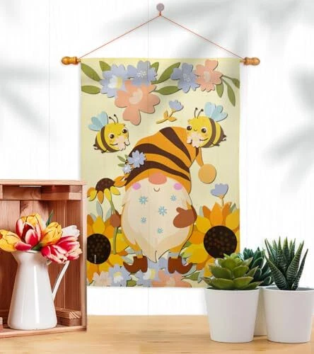 Gnomes Wall Hanging Wood Dowel Set Tapestry Flags Wooden Pole Banner Bees Flo...