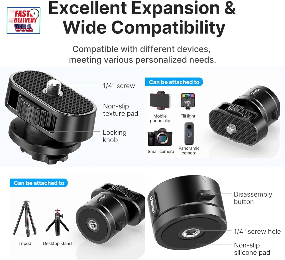 Store New Arrivals Add to Favorite View Feedback Contact Go Quick II to 1/4" Adapter - 1/4" Thread Go Quick II Base + 1/4" Screw QR Cover Compatibe with Go Quick II Seriese Selfie Stick/Tripod/Monopod/Compact Camera/Phone/Led Video Light Description Color GQII to 1/4" Compatible Devices Camera Maximum Weight Recommendation 2 Pounds Item Weight 0.09 Pounds Package Dimensions 2.2 x 2.13 x 2.05 inches 【Quick Release in a Second】the Go Quick II 1/$" tripod adapter is equipped with Go Quick II System, magnetic mount, strong suction, help you quickly connect in a second without consuming screws. 【1/4" Screw Cover】compatible with all Go Quick II series, such as Go Quick II selfie stick/tripod/gooseneck mount/neckt mount etc. enable to quick release camera/insta360/phone/led video light 【1/4" Thread Base】the 1/4" thread base fit any 1/4" screw, able to equip Go Quick II quick release system on selfie stick, tripod or other gears. Realize quick release on other equippments 【Safe & Stable Structure】 insert secondary reinforced locking pin, more secure for use 【Warranty Service】If you are not Satisfied With the 100% Quality, Please Contact us, Our 12 Months Risk-Free Service is always on even return window close. If you have any problems with our product, please contact us first, we will solve it for you within 24 hours. ABOUT US We offer the best prices around on high quality products. Our E-store includes media such as books, movies, music and games while offering electronics, toys, sporting apparel, clothing, tools, general home, garden items and more. SHIPPING We are always working hard to ensure your package arrives as soon as possible. Please understand that some factors like weather, high postal traffic, and the performance of shipping companies are outside of our control. We offer free shipping to the lower 48 states and ship within 2 business days of payment, usually sooner. We do not accept P.O. Boxes. Please provide a physical address. For shipping outside of the continental USA, we only use eBay's Global Shipping Program.The item is shipped to KY and then sent to the rest of the world. International customers are responsible for all duties and taxes. Continue to check out in order to calculate costs for shipping the item to your country. Messages regarding eBay's Global Shipping Program MUST be directed at eBay EXCLUSIVELY. RETURNS We offer a 30-Day Return Policy on items which you are not completely satisfied with. You have the option for a full-refund or an exchange of the item. No returns are available on items shipped outside of the USA. PAYMENT We accept PayPal. CONTACT US This page content is yet to come Please ad us to your favorite seller and visit again later Thank You CUSTOMER SATISFACTION We try our very best to make sure every customer is completely satisfied. If there's a problem, message us! We're happy to help. WE ACCEPT Copyright © 2021 AutoDS. | All Rights Reserved