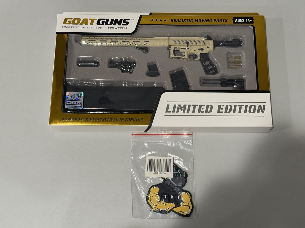 GoatGuns Limited Edition FDE AR-15 Skeleton Model #42/600 SEALED NEW SHIPS NOW Ships within 2 business days! Feel free to message me if you have any questions! AR-15 Skeleton 1:3 Scale Model "SANDSTORM" LIMITED EDITION 600 made, each package has a #/600 sticker! Sarge hasn't done FDE like this since the 'Dust Off' series years ago. Lighter then the coyote or tan seen on our SCAR/MRAD® model, this FDE is a glistening beauty. GoatGuns web exclusive! Nicknamed 'SANDSTORM' (Sticker included) The love, look and lust of the AR-15 Skeleton model 3 dummy rounds Non-firing model