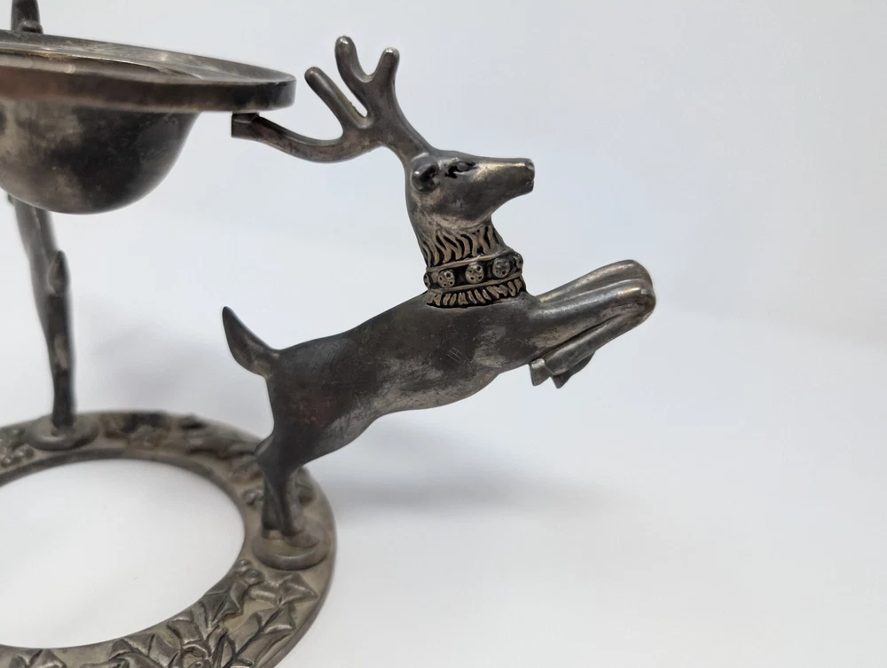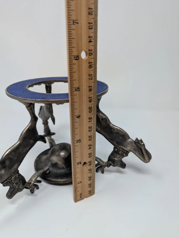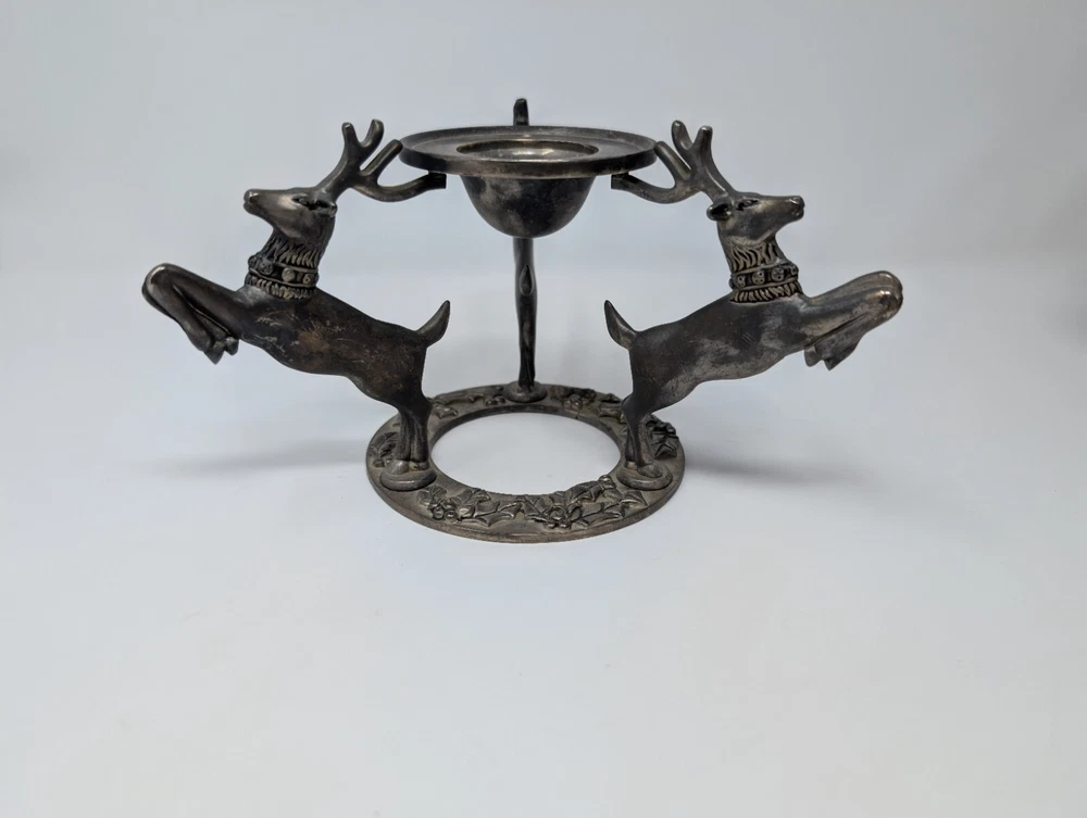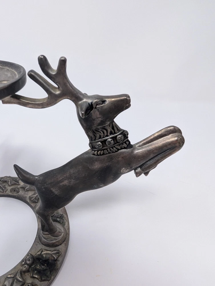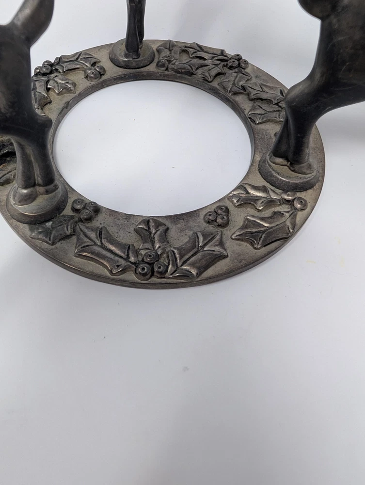 Godinger Silver Plated Triple Reindeer Candle Holder Holiday Christmas