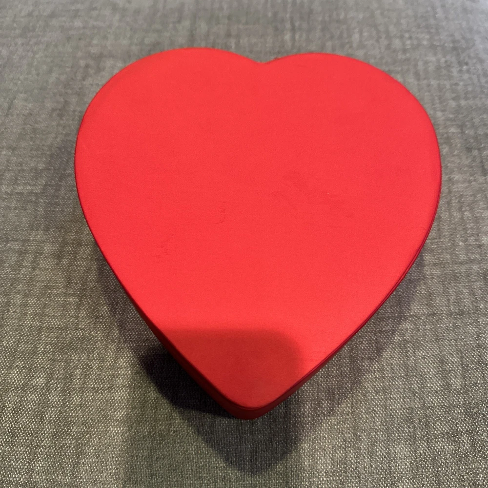Padded red heart empty Godiva box with a bow and love emblem, the box has two indents pointed out in pics.