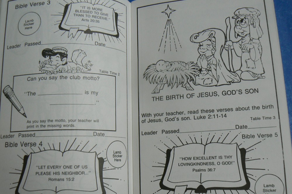 This listing is for two like-new "MEMORY BOOK" booklets from Master Clubs in Ohio . The first is God's Little Lambs for 4 yr. olds 9 (45 pgs.) The second is God's Little Shepherds for 5 yr. olds (49 pgs.) These stapled booklets are in excellent condition with all pages crisp, clean, and sturdily bound; the covers on the 5 yr. old books show a little wear, but there is no writing in either book. (Please see all the photos; the last six are from the 5 yr. old book, and the others are from the 4 yr. old book.) You won't be disappointed! (I have three sets like this, and a single 5 yr. old book listed.) I'm listing lots of school books (and other items!) right now. Please check them out! I normally mail ON the day I receive payment if it's received before 1 p.m. central time, and the next day if it's later than 1. Please take a look at my other listings; I'm listing many school books (and others) and am happy to combine shipping. All items coming from a smoke-free, pet-free home! Thanks so much for your time! Before leaving your feedback, if for any reason you feel I did not deserve or earn 5 stars in each category, please let me have the opportunity to make it right. I want every transaction to be 5-star worthy! Thanks so much! :)