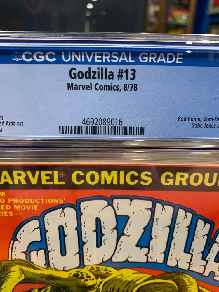 Attribution:Portions of content provided by the Grand Comics Database under Creative Commons Attribution-ShareAlike 4.0 International License (CC BY-SA 4.0)Language:EnglishGenre:Science FictionSeries Title:GodzillaPublication Date:August 1978Volume Number:1Publisher:Marvel ComicsPublisher Country:United StatesIssue Number:13Artist/Writer:Don Warfield, Herb Trimpe, Doug Moench, Fred Kidagtin13:0714860280408Cover Artist:Herb TrimpeEAN:0714860280408Number of Pages:36brand:Marvel Comics_desc_:Comic Stories: The Mega-Monsters from Beyond! Part II: TriaxIssue title:Mayhem is the Mega-Monster!Character:Dum Dum Dugan, Gabe Jones, Godzilla, Jimmy Woo, Red Ronin, Krollar (Antagonist), Triax (Antagonist), Rob Takiguchi, Tamara Hashioka (Cameo), Rhiahn, Rhiahn (Antagonist)Publication Year:1978Era:Bronze Age (1970-83)