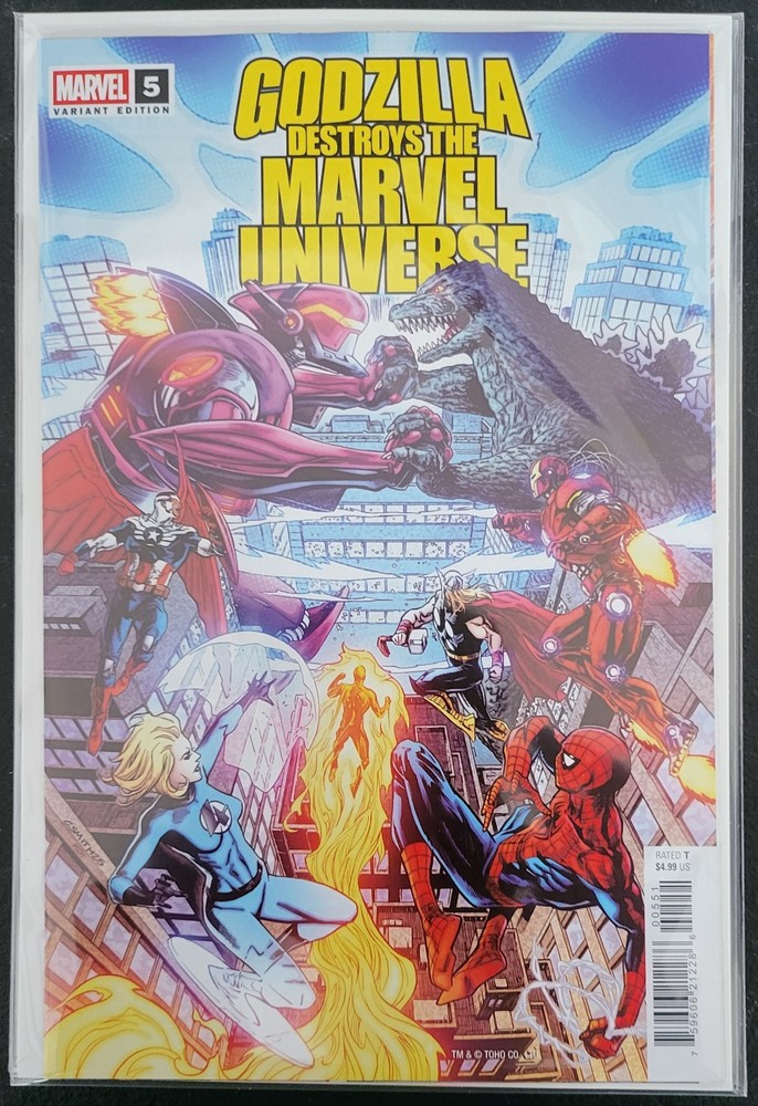 Godzilla Destroys The Marvel Universe #5, Lot of 6 Standard Covers, NM/Better Hello Shoppers, just a few things to point out about our listings. All listings are for full books and not covers only. Please feel free to make reasonable offers when best offer is available on an item. We do combine shipping and the best way to do that is to add all the items you are looking to buy to a cart and ask for an invoice but if not please just drop us a line. Generally, we look over the past sales to see if anyone was overcharged and send back the money overcharged but we might miss it if you don't send a message. We also accept returns if any item arrives damaged, please just contact us and let us know the situation before you leave feedback so we can try to rectify the situation amicably. We want to create a satisfying buying experience for both of us, which is why we do things the way we do. Lastly, please be reasonable in your dealings with us as we will always be reasonable with you. Our shipping time is longer, and we state it clearly in the listings 10 business days from payment because it takes us longer to pack your order up with the extras and ship the way we do, which is the main reason most of you say is why you want to buy from us. We look forward to helping you with your collecting experience. All the best. Please save us as a favorite and check back often as new items go up weekly. Any questions, message