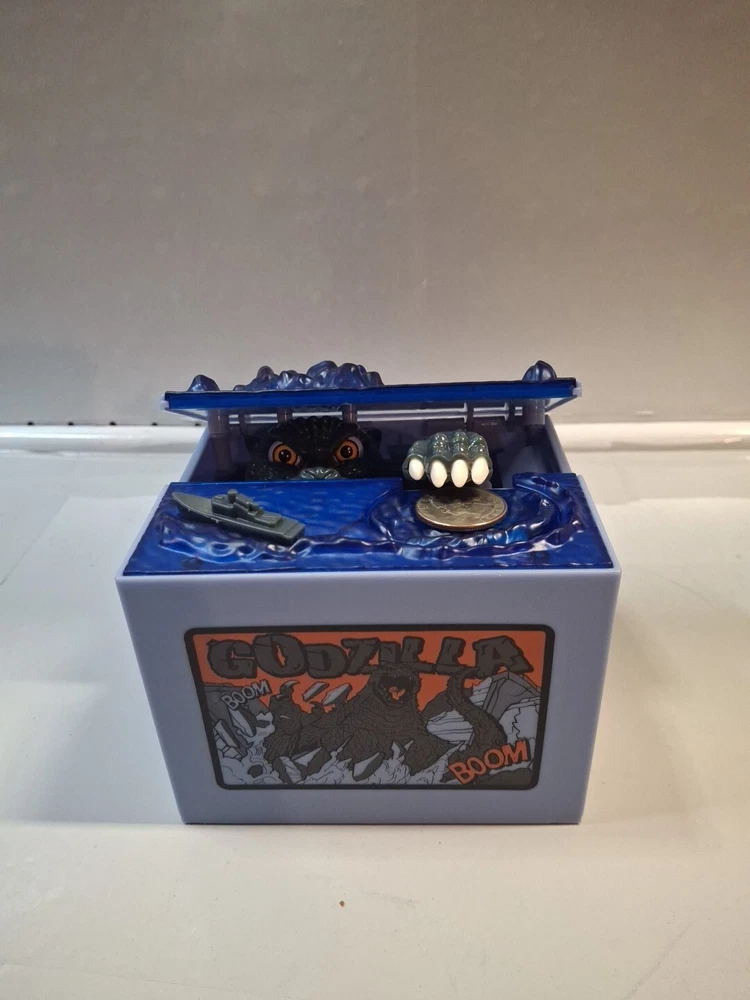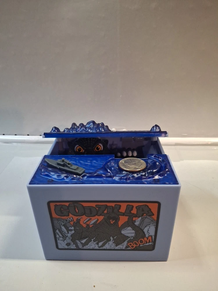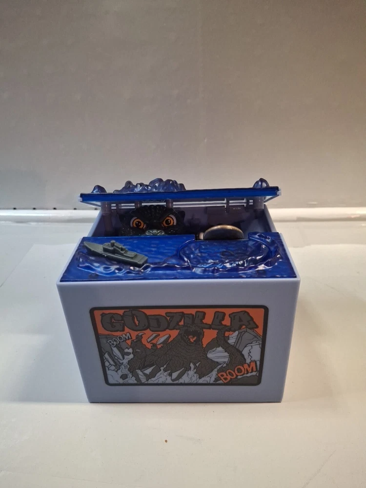 Godzilla Mischief Bank Coin Box LED Sound Gimmick Moving Figure Works Mint Condi