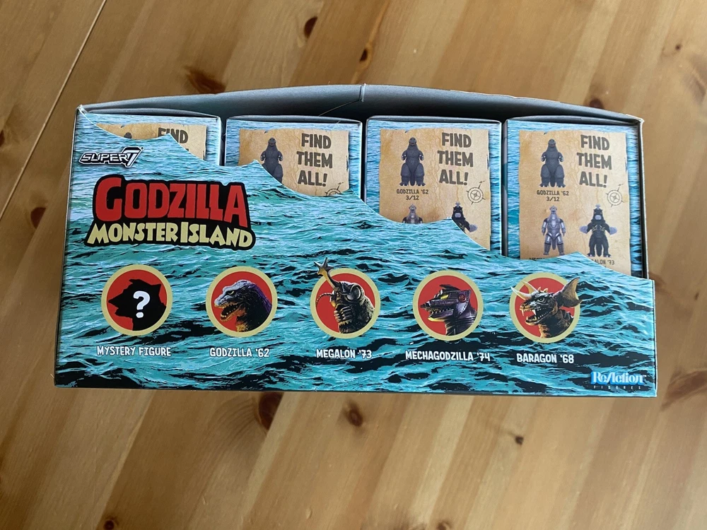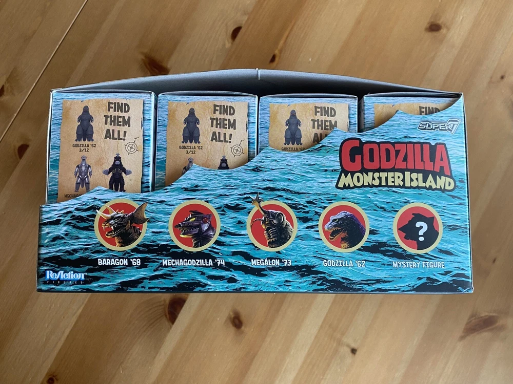 Godzilla Monster Island Super 7 ReAction Kaiju Blind Box x12 Full Display Case This listing is for one full display case (including the case). Case was purchased as a whole. All blind boxes are factory sealed.