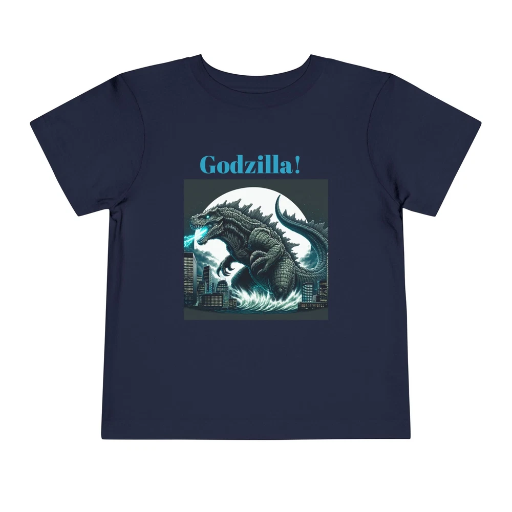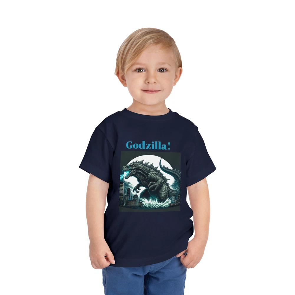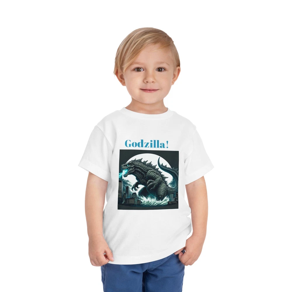This Toddler Short Sleeve Tee brings a playful yet bold vibe that’s perfect for your little ones. Designed for comfort and style, this tee features a striking Godzilla graphic that is sure to excite fans of all ages. The light fabric makes it ideal for everyday adventures, from playdates to family outings. Perfect for birthdays or special occasions, this tee is a great gift for young monster movie enthusiasts. Celebrate holidays like Halloween or other themed events with a fun addition to their wardrobe, allowing them to express their passion for classic cinema while staying cool and comfortable. This tee is relevant for toddlers who love to express their interests in a vibrant way! Product features - Side seams enhance the structure and shape of the tee. - Made from various fiber compositions for different colors, including 100% cotton options. - Crafted from 100% airlume combed and ring-spun cotton for a soft touch. - Lightweight fabric makes it comfortable for all-day wear. - Features a convenient tear-away label for added comfort. Care instructions - Machine wash: cold (max 30C or 90F) - Do not bleach - Tumble dry: low heat - Iron, steam or dry: low heat - Do not dry clean