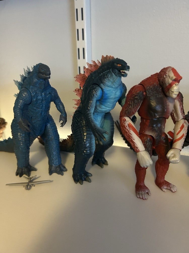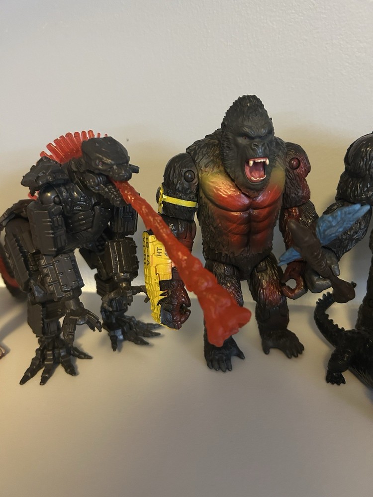 Lot includes -Godzilla Energized (Plane included) -Godzilla Evolved (No Atomic Breath) -Skar King (No whiplash) -Battle Mechagodzilla (Proton Scream included) -Kong With Beast Glove (No heav) -Kong (Battle Axe included) -Suko and Doug (Rock included) -One Eye (Bone Included) -Tiamat (Submarine included) -Giant Shimo Relatively good condition for all figures