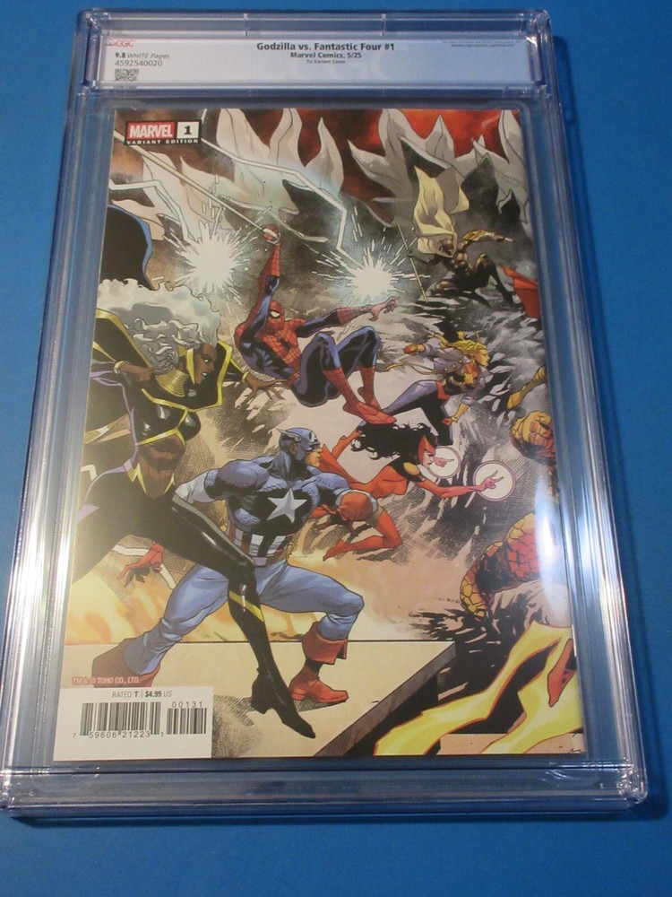 This auction is for Godzilla vs Fantastic Four #1 variant in CGC 9.8 with a new case condition. This week we are selling an incredible collection including Amazing Spider-man , Silver Surfer, Dr. Strange, X-men, Iron Man, Hulk, Fantastic Four, Black Panther, Batman, CGC books and many other 1st appearance key issues. You are sure to find something you are looking for this week. Bonus Offer! Win 2 or more comics and get a bonus comics (10 dollar minimum) and an upgraded bonus if you win 10 auctions. Our Shipping rates are: USA: 5 dollar flat rate shipping on raw comics with no limit. Canada: 16 Dollars for the 1st comic and 1.50 each after that. International: 18 dollars for the 1st comic and 1.50 each after that. CGC books are 11.99 flat rate shipping for up to 20 CGC slabs in the USA, 24 bucks and 12 combined for Canada and 28 bucks and 14 combined for international. Australia is more. Feel free to ask questions. I guarantee superfast Domestic shipping! ...to open their eyes...that they may receive forgiveness of sins and a place among those who are sanctified by faith in me. Acts 26:18