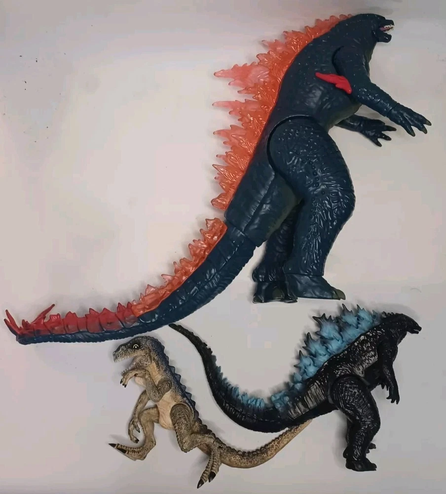 The product is a collectible from Huge ro smaller from Godzilla figures from the Godzilla x Kong product line by Bandai and Toho Baby Godzilla 1998, And It features a giant evolved Godzilla character with a Baby Claw Slasher, and Legendary Mega Godzilla inspired by the movie "Godzilla vs. Kong." The figure is made of plastic, and is designed with multicolor details to represent the iconic Godzilla character. The theme revolves around the Godzilla franchise, making it a desirable item for fans and collectors of Godzilla and monster-themed toys.