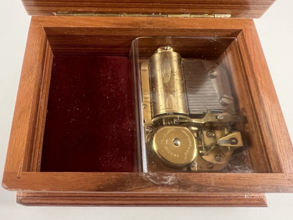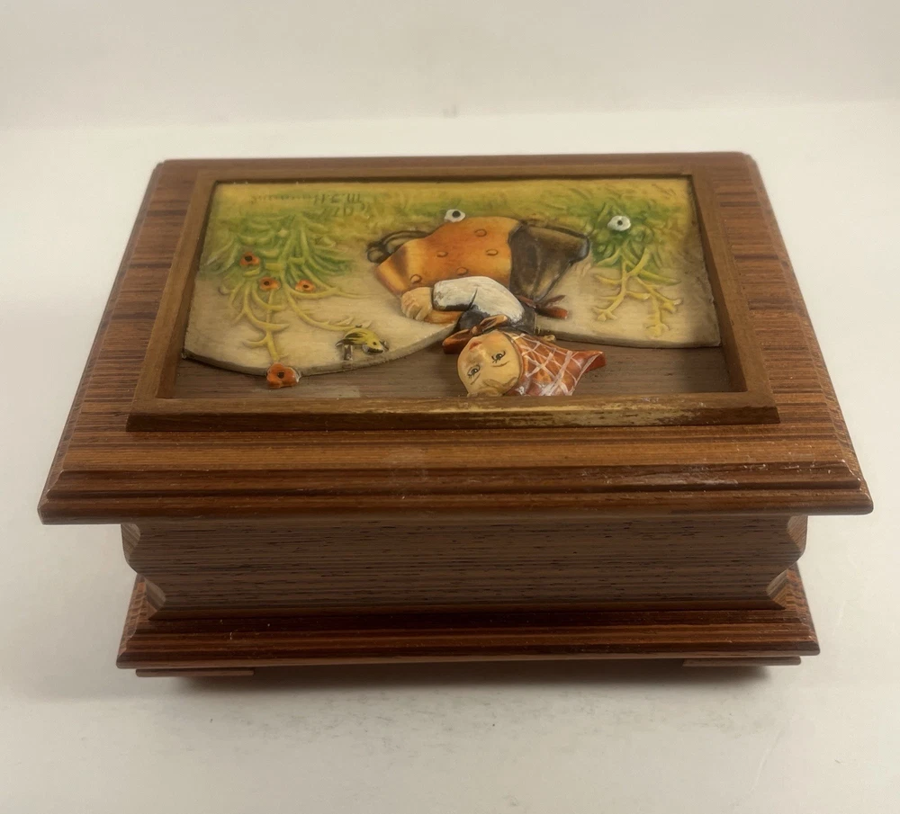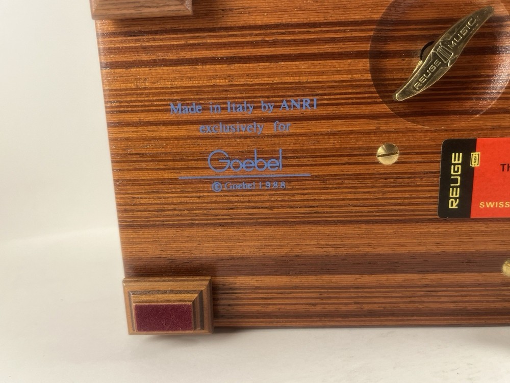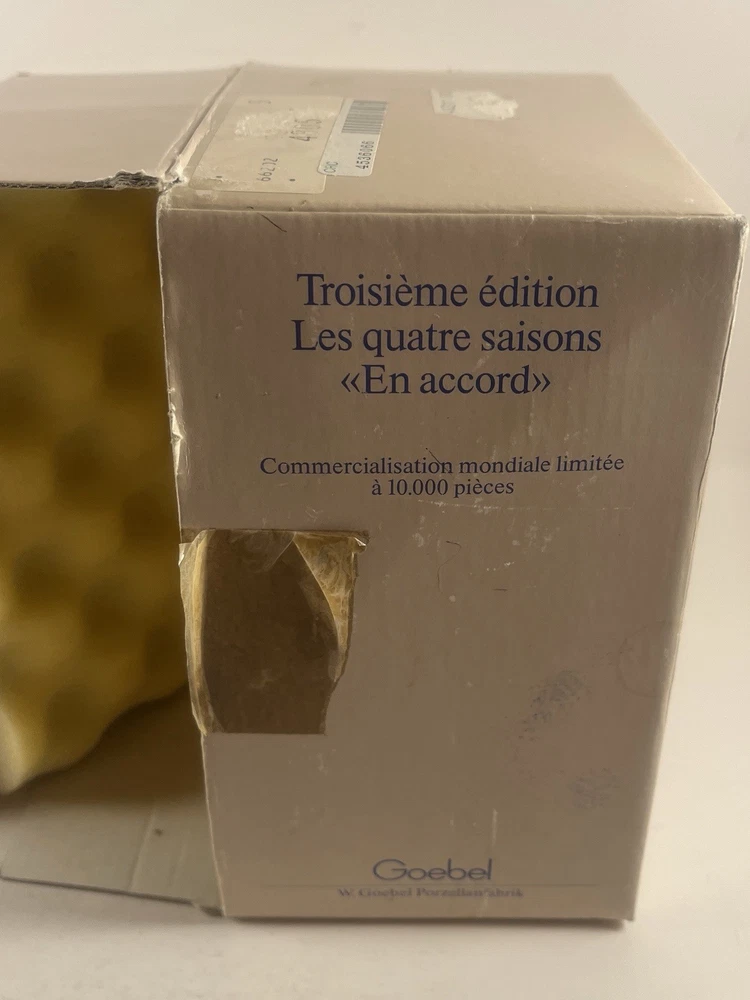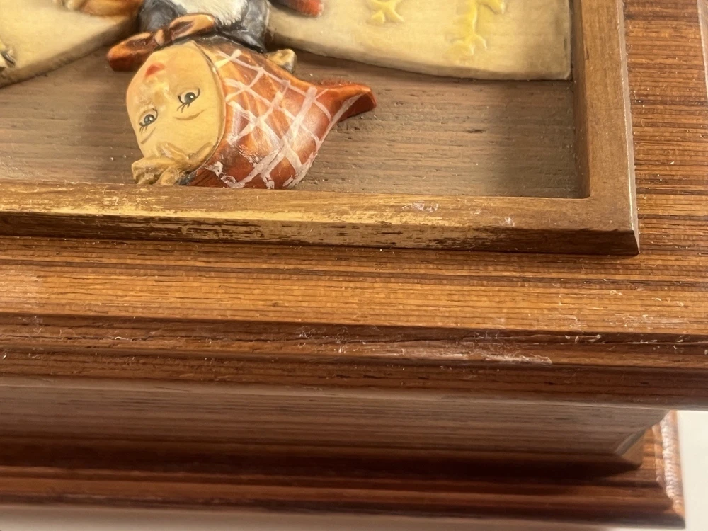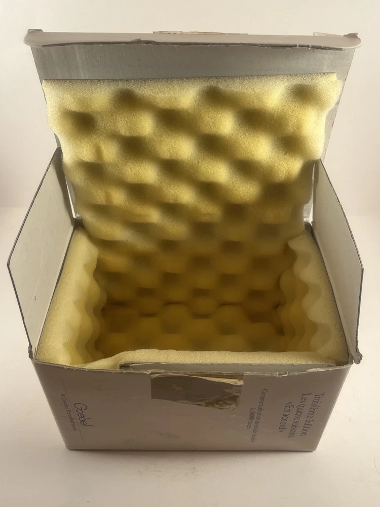 Subject: M.I. Hummel "In Tune" Limited Edition Musical Box by Anri & Reuge Item Specifics • Brand: Goebel / M.I. Hummel • Collaboration: Anri (Italy) & Reuge (Switzerland) • Series: Four Seasons Series (Third Edition) • Title: "In Tune" (Mach's Nach) • Limited Edition: No. 04805 of 10,000 • Year Produced: 1987 (Released 1988) • Musical Movement: Reuge 36-Note Swiss Movement • Song Played: The Blue Danube (Blaue Donau) • Material: Hand-Carved Wood, Hand-Painted Porcelain Plaque • Handmade: Yes (Hand-carved, hand-painted, and hand-tuned components) • Features: Original Box, Certificate/Booklet Included • Country of Manufacture: Italy / Switzerland / W. Germany Key Features • Triple-Artisan Collaboration: A rare collectible featuring M.I. Hummel artistry, precision hand-carved woodwork by Anri, and a world-class musical movement by Reuge. • Limited Edition Status: This piece is individually numbered 04805 of 10,000, making it a significant find for serious Hummel or music box collectors. • Handmade Quality: Every element of this box showcases manual craftsmanship, from the chiseled wooden frame to the meticulously hand-tuned 36-note mechanical movement. • Musical Performance: Plays a crisp, melodic rendition of Johann Strauss’s "The Blue Danube." Condition Report • Functional: The Reuge movement has been tested and is in excellent working order, playing clearly and at the proper tempo. • Cosmetic: The porcelain plaque is in pristine condition with no chips, cracks, or fading. The wooden case shows minor, light surface scuffing on the top edges of the frame consistent with careful previous display. • Packaging: Includes the original Goebel box and the informational series booklet. The box shows some light shelf wear and evidence of previous tape but provides excellent protection.