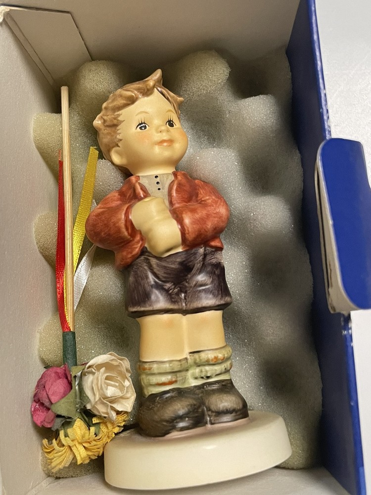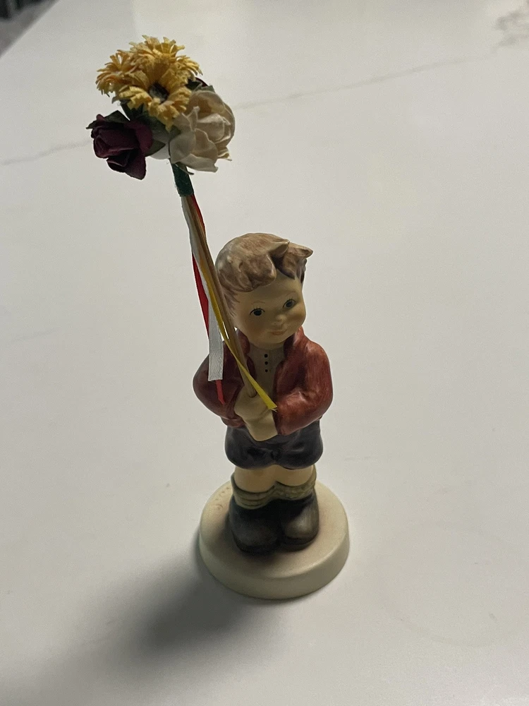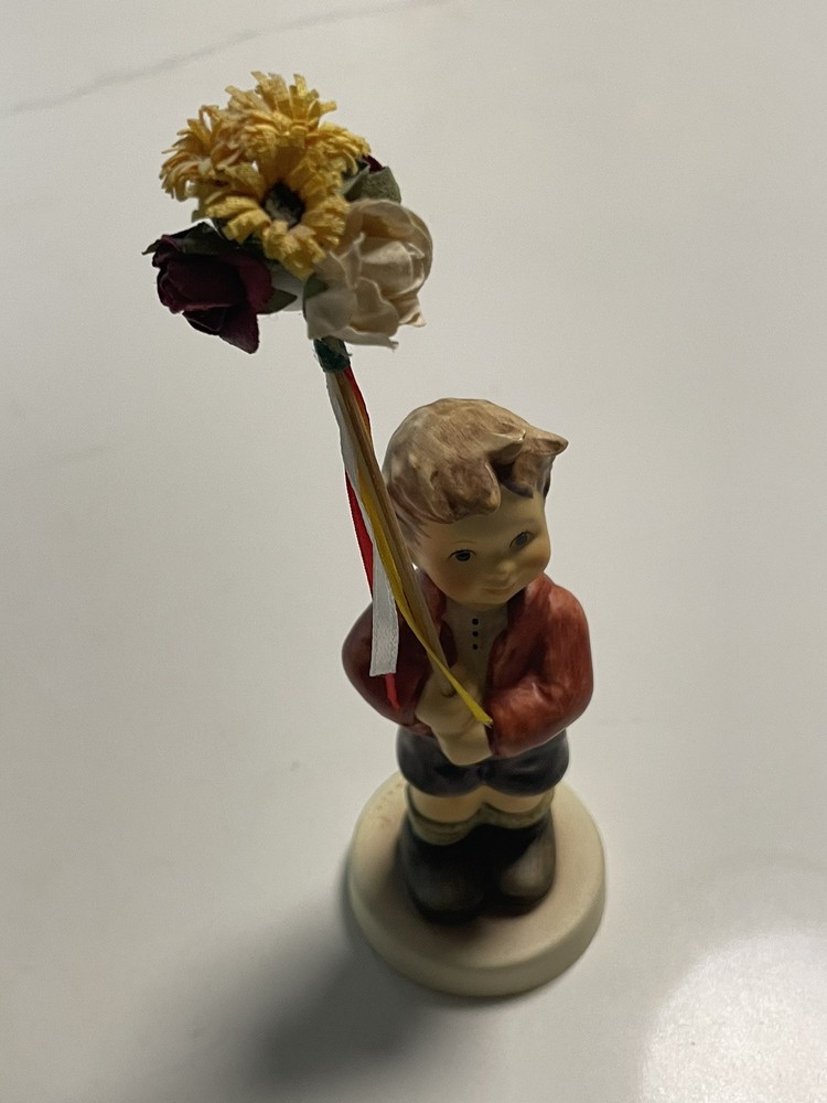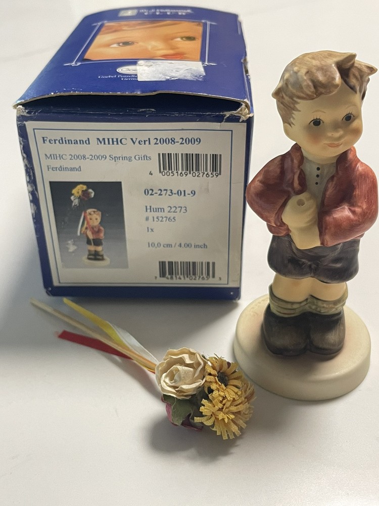 The Goebel Hummel Spring Gifts 2273 TMK8 Figurine depicts a child offering a bouquet of flowers, showcasing intricate craftsmanship on porcelain. This small 4-inch figurine is signed and comes with its original box and Certificate of Authenticity from the year 2008. Handmade in Germany, it is part of the Hummel collection and features a matte finish, making it a delightful addition to any room. Shipping 1 We Processes orders within 1-2 business days when orders are placed Monday through Saturday. Orders placed on Sunday, will start processing the next business day. We ship within the United States. . We offer international shipping via ebay’s Global Shipping Program (GSP)( please inquire with ebay about cost and availability).y To protect your purchase, orders totaling $250 and above require a signature up on delivery. Please choose a shipping address where the package can be signed for during normal business hours(M-Sat 8:00 am- 5:00 pm). Please review all photos, they are an important part of the item description. These photos have been lightened slightly to show detail. We also will combine shipping as well,DO NOT ship to ALASKA, Hawaii, PUERTO RICO. Thank you for looking(ab11)