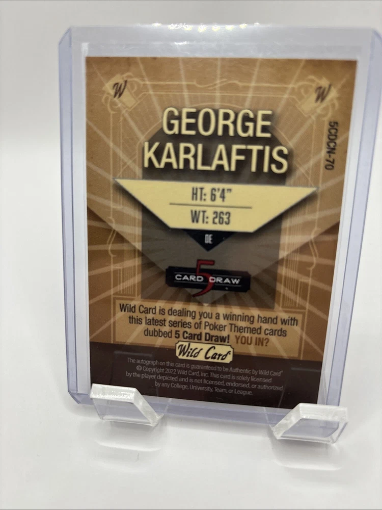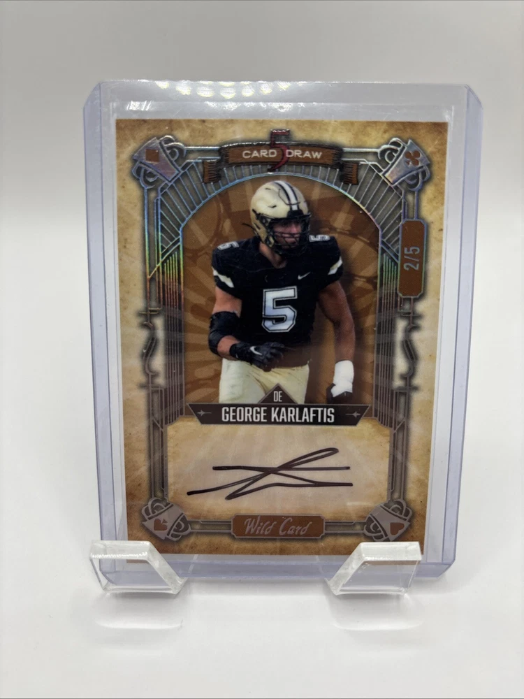 Goerge Karlaftis Wild Card Card 5 Draw Auto 2/5. Condition is Ungraded. Shipped with USPS Ground Advantage.