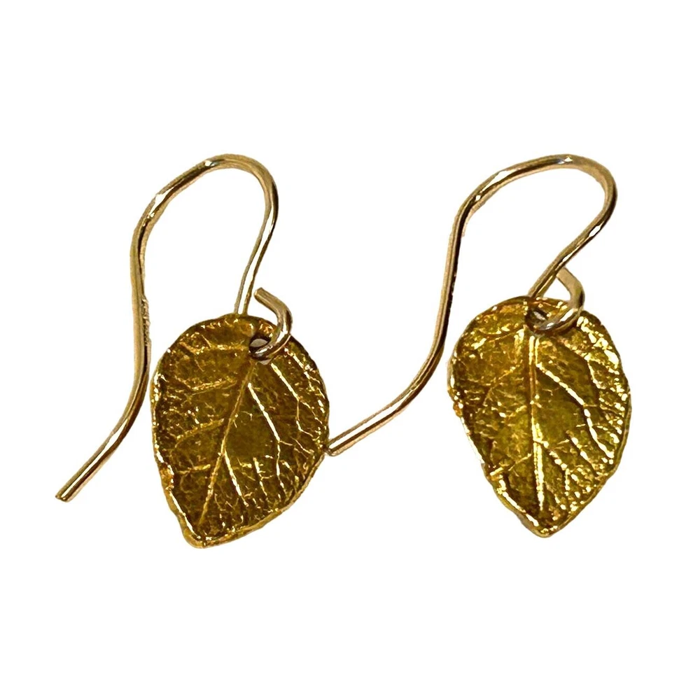 Dainty leaf pierced earrings with nice raised relief design. Marked 925 on back of earrings. The drop measures 3/4 inch and each individual leaf measures 1/2” tall. Perfect for individual wear or lovely as stackable. Perfect gift!
