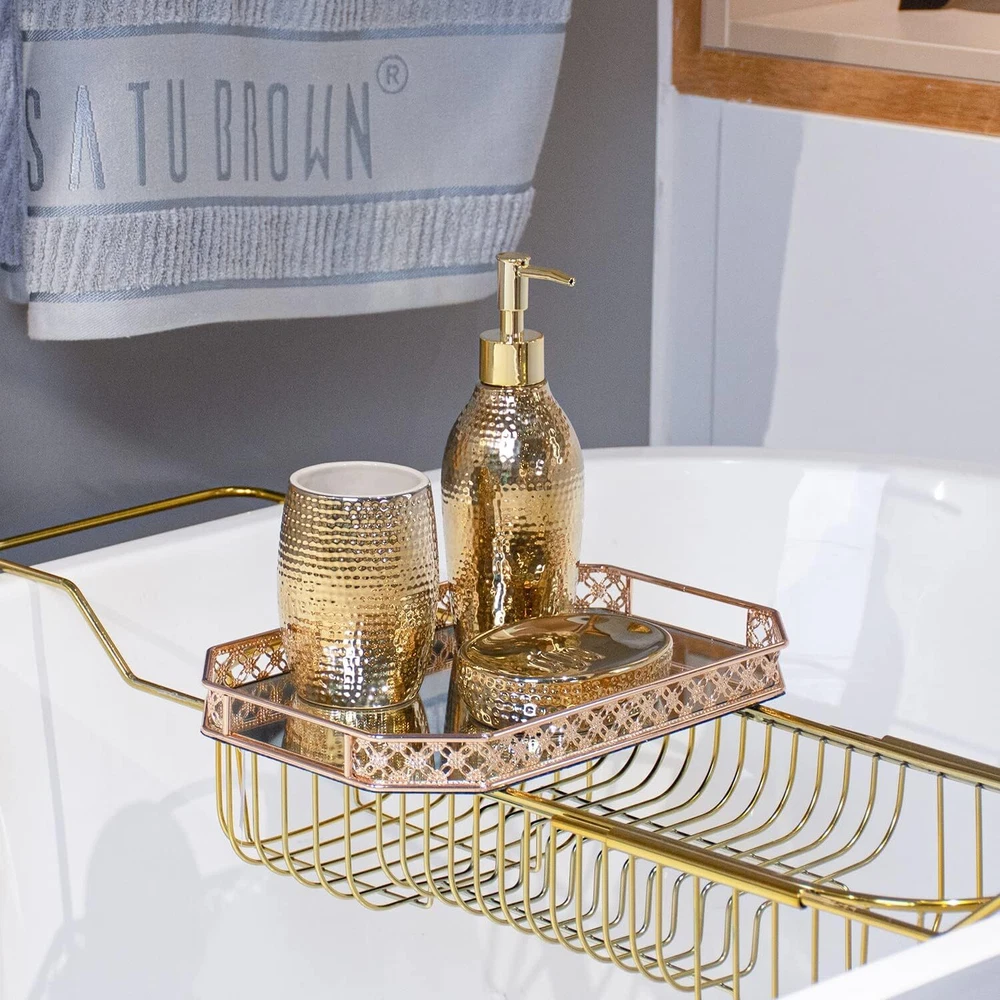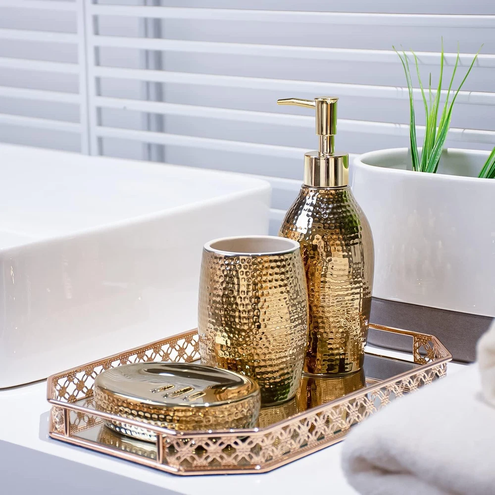 Gold Bathroom Accessory Set - 3 Piece Decorative Ceramic Bathroom Accessories