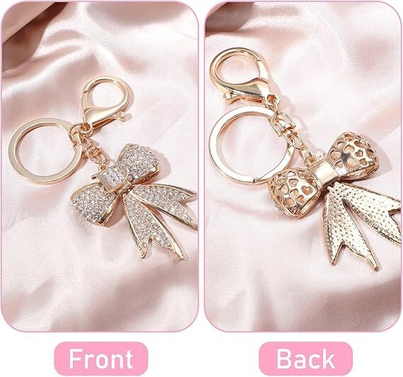 Gold Bow Keychain Rhinestone Bag Charms for Handbags Shiny Purse Charms Cute Key Cute Shape: This gold white keychain is designed with a cute bow shape, which is cute and charming, adding a fashionable and elegant charm to you Quality Materials: This cute bow keychain is made of quality metal and rhinestones, which is eye-catching and shiny, and sparkles under the light Suitable Size: This bag charm for handbag is about 4.5 x 11.5cm / 1.77 x 4.53in, which is light and compact, adding a charming feeling to your items Widely Applicable: This bow keychain can be widely used in purses, bags, handbags, backpacks, etc., and is also very suitable for car keys, etc. Ideal Gift: This cute keychain is exquisite and beautiful, and it is very suitable as a birthday, anniversary gift for mothers, wives, friends, etc. Return Policy: We offer a 30 day return policy from the receiving date. Please contact us for a Free Return Label. Please use our return label so it will go back to our supplier and we can do a refund or replacement afterwards. Feedback: Your satisfaction is very important to us! If you have any problem with your order, please contact us and we will do our very best to make you satisfied. As long as you are happy with your purchase, please leave a positive feedback for us. We will always leave you a positive feedback in return. If you have any problem with your purchase, please do not leave a negative feedback. Please Contact us ... and your issue will be solved quickly and positively We are a small family-owned business trying to make a living, not a huge company that does not care ... We will ALWAYS do our best for you!