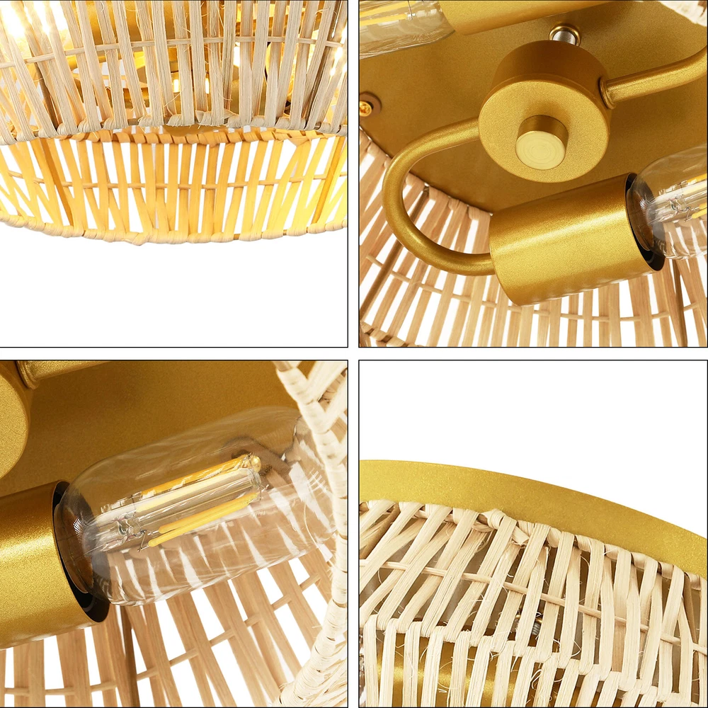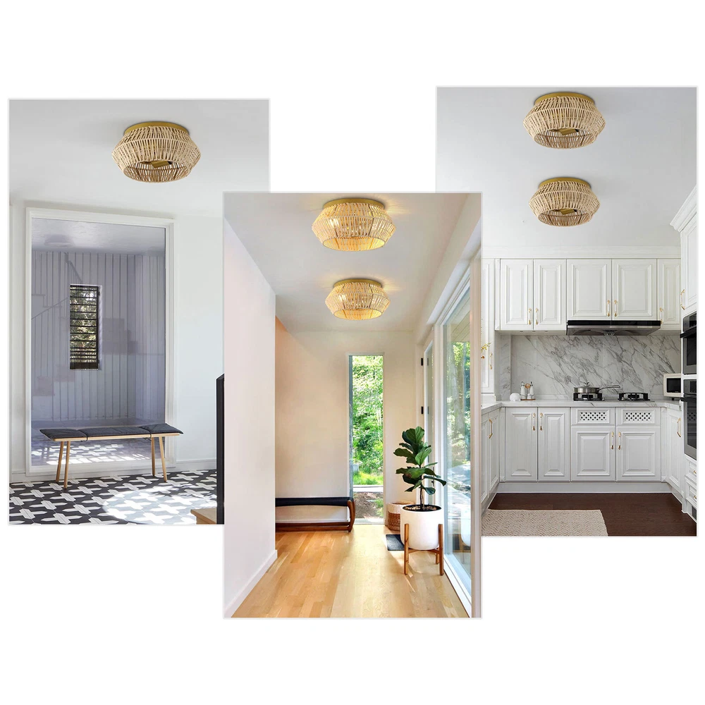 Specification Model: JK1201 Color: Gold Material: Iron, Rattan Voltage: 110V Power Source: Hardwire Style: Natural, Boho, Coastal, Farmhouse Surface Treatment: Baking Paint Process, Hand Woven Light Source: 2* E26 Bulbs (Not Included) Efficiency: E Mount Type: Ceiling Mount Applicable Area: 10-20m²/107-215ft² Light Fixture Form: Pendant Light Direction: Downlight Base Diameter: 22cm/8.66inch Lampshade Size(L*H): 30*14cm/11.81*5.5inch Lampshade Opening Diameter: 22.6cm/8.89inch Package Included 1* Woven Ceiling Light Gold Ceiling Light Woven Rattan Light Fixture Bedroom Ceiling Mount Lamp E26 USA Description Bright and colorful lights can bring charm and warmth to your room, and light up your life. With a handwoven rattan lampshade, this ceiling light is unique in shape and reveals a natural and minimalist atmosphere. Besides, it also has excellent lighting performance, which can emit soft light through the lampshade to the entire room. It is often used in central areas such as living rooms and bedrooms, which not only meets lighting needs but also beautifies the home environment. Details Smooth Surface: The iron part has a smooth surface, which allows for easy cleaning and can protect your hands. Standard Lamp Holder: With standard E26 lamp holders, it is compatible with a variety of Edison, CFL, or LED light bulbs to facilitate the replacement of bulbs. Application It is suitable for farmhouses, stairs, attics, nurseries, clubs, lounges, kitchens, hallways, living rooms, bedrooms, bathrooms, balconies, bars, aisles, foyers, hotels, restaurants, cafes, dining rooms, children's rooms, and libraries of 107-215ft². Specification Model: JK1201 Color: Gold Material: Iron, Rattan Voltage: 110V Power Source: Hardwire Style: Natural, Boho, Coastal, Farmhouse Surface Treatment: Baking Paint Process, Hand Woven Light Source: 2* E26 Bulbs (Not Included) Efficiency: E Mount Type: Ceiling Mount Applicable Area: 10-20m²/107-215 ft² Light Fixture Form: Pendant Light Direction: Downlight Base Diameter: 22cm/8.66inch Lampshade Size(L*H): 30*14cm/11.81*5.5inch Lampshade Opening Diameter: 22.6cm/8.89inch Package Included 1* Woven Ceiling Light Notes Please check the dimensions of the product before ordering to ensure it fits your home. The lamp body is designed in parallel, and partial damage will not affect the overall use, facilitating after-sales maintenance. When using dimmable bulbs and dimmable switches, this product can be dimmed (Note: bulbs and switches are not included). Please make sure that the power supply has been cut off before installation, and conduct a power test before installation. When installing, please wear electric insulation gloves(not included) and avoid scratching the surface of the lamp plate. The product must be hardwired, and it's recommended to install this product by a professional electrician. Please use the lamp within the applicable voltage range and clean lamps regularly. Please allow the slight color difference caused by the shooting light and 1-3cm error due to manual Payment Delivery details Terms of sales About us Contact us Payment We accept ebay payment 。 Fees such as import duties, taxes are not included in the item price or shipping costs. These charges are the buyer's responsibility. Delivery details Shipping: 2-9 working days to: USA Terms of sales We maintain high standards of excellence and strive for hundred percent customer satisfaction. Feedback is very important to us. We hope that you contact us immediately before you give neutral or negative feedback, so that we can address your concerns. It is impossible to address issues if we do not know about them! About us Your satis faction is our ultimate goal. We work hard to earn your trust and future business. Our certified technicians have tested each item before shipping. The unit comes with 1 year limited warranty on all manufacturing defects. a) If you receive a defective item, you may return it or ask for a discount. Please contact us within 14 days after you receive the package. b) What you returned must be intact and in its original packaging as re? u. Customer is responsible for shipping costs of the returned item. c) We will cover the cost of shipping back t with the shipping rate indicated in the registration page. We will send you a new unit or refund the full payment you paid. Thank you. Contact us Business Hour Business Hour: Monday To Friday: 8:30 AM to 5:00 PM (Beijing China time) Due to time zones, our reply to your questions may not be immediately. But within above working time, we will reply your email within 24 hours. If it's non-workdays, please kindly be patient and wait till Monday. Please contact us with ebay message. Please feel free to contact us if you have any questions. Monday To Friday: 8:30 AM to 5:00 PM (Beijing China time) Due to time zones, our reply to your questions may not be immediately. But within above working time, we will reply your email within 24 hours. If it's non-workdays, please kindly be patient and wait till Monday. Please contact us with ebay message. Please feel free to contact us if you have any questions. Feature 3 Easy Operation Feature 2 Convenient Use 1.Feature great seller! A++++++ * Feature2 Durable Material Brand TBvechi Feature stable performance and high quality Manufacturer Warranty 3 Years Features Compact Design and Beautiful Appearance shipping notice Can not ship to Puerto Rico,Alaska/Hawaii Type Ceiling Light Model JK1201 Color Gold Material Iron, Rattan Voltage 110 V Power Source Hardwire Style Natural, Boho, Coastal, Farmhouse Lighting Technology 2* E26 Bulbs (Not Included) Light Direction Downlight Room Bedroom, Dining Room, Greenhouse, Home Office/Study, Kitchen, Living Room, Porch, Utility/Laundry Room Efficiency E Mount Type Ceiling Mount EAN Nicht zutreffend UPC Does not apply ISBN Does not apply MPN Does Not Apply