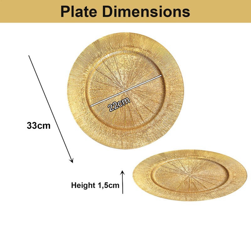 Store category Sign Up Now ! You may also like Product Description Bullet Points: Efficient Reception Solution: These 100 gold chargers plates offer a lavish touch to any event's tablescape. With a sufficient quantity for caterers, event planners, and homeowners, they provide an efficient and elegant solution for hosting receptions Elegant Design: Made of gold PP, these charger plates feature a distinctive texture on their surfaces to create an elegant design that creates a luxurious feeling. This unique addition improves your dining experience while making guests feel special and valued, leaving a lasting impression on their minds Upscale Table Setting: Each dinner plate, about 13 inches in size, is designed with wide edges to effectively prevent food spillage and keep the table clean; also increases the stability and practicality Widely Applicable: Suitable for weddings, birthdays, and cultural events, these gold charger plates add to the fun of dining outdoors or at home, making your food look more attractive Easy to Clean: Hosting made easy with these gold charger plates that wipe clean effortlessly with a damp cloth. Crafted with sturdy elegance, they improve any setting and are easy to store at room temperature Our Gold Charger Plates provide a touch of elegance to your special occasions. With sufficient quantity, the plates have a unique texture on the surfaces which also increases stability and practicality. Perfect for weddings, they can be stored at room temperature for convenience. Specifications: Product name: Gold Charger Plate Product color: gold Product material: PP Product size: about 33x33x1cm/13x13x0.4 inches Packing List: 100* Gold Charger Plates Notes: 1. Due to different lighting and screen settings, the item color may be slightly different from the picture. 2. Due to different manual measurements, please allow a 1-2cm difference in size. Payment Delivery details Terms of sales About us Feedback & DSRs Payment Before you palce an order, please kindly make sure that you have a paypal account. We accept PAYPAL payment only. Payment should be completed within 2 days after auction closed, or unpaid dispute will be filed for an closing auction. An unpaid case will be filled after 4 days. Delivery details We ship to your eBay address. Each package will be shipped to US by UPS Regular Parcel with tracking number. Please check your shipping address carefully before checkout, it can't be changed if order completed. All items will be shipped within 1-2 business day upon receipt of payment.Orders placed on weekend will be shipped within 3 days. If you do not receive your item in 7-10 business days.please contact us immediately for further assistance. We will be responsible for any damages or losses incurred in the shipping process. About us We maintain high standards of excellence FIVE STAR and strive for 100% customer satisfaction! Positive Feedback is very important to us. We hope that you contact us immediately Before you give us neutral or negative feedback, so that we can satisfactorily address your concerns. We promise to offer the lowest price and high quality produce. Our working time: From Monday to Friday(9:30 am to 18:00pm), we don't working on holidays ,hope you can understand and know that , thank you. Please always talk to us via ebay Message. We appreciate your business and look forward to growing our e-Bay sales with satisfied customers. Feedback Contact us If you have any questions, please feel free to contact with us by ebay Message during our business hours ( 9:30a.m. to 5:30 p.m.), or email us through eBay, we will try our best to help you to resolve it. For any presale or after-sale questions,please do feel free to email us! Due to the time difference, each email will be replied within 1 working day,and weekend will be delayed a bit. Feedback