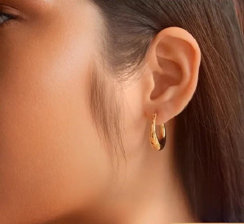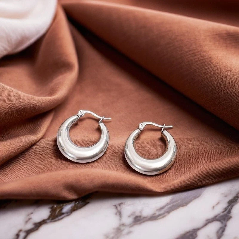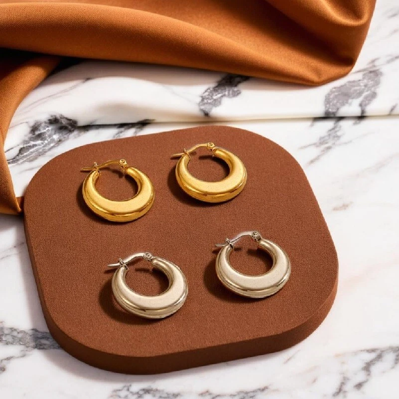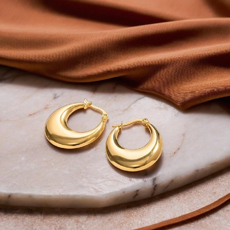 Yellow gold plated huggie hoops featuring chunky round circles, perfect for everyday wear. These minimalist earrings are hallmarked and made of stainless steel with a cluster setting. Ideal for Mother's Day, anniversary, or birthday gifts, these earrings have a classic design that can be stacked with other jewellery. A beautiful addition to any jewellery collection.