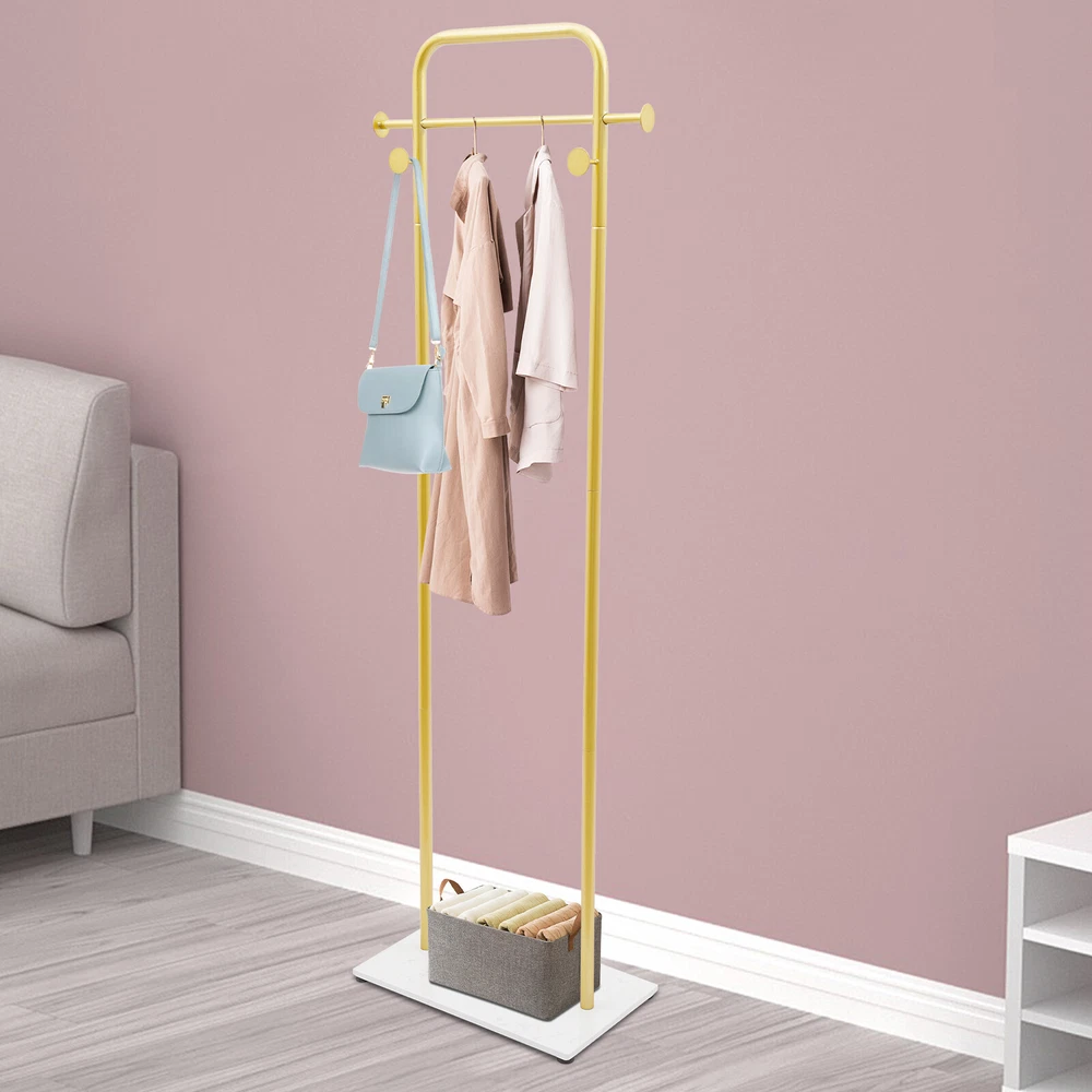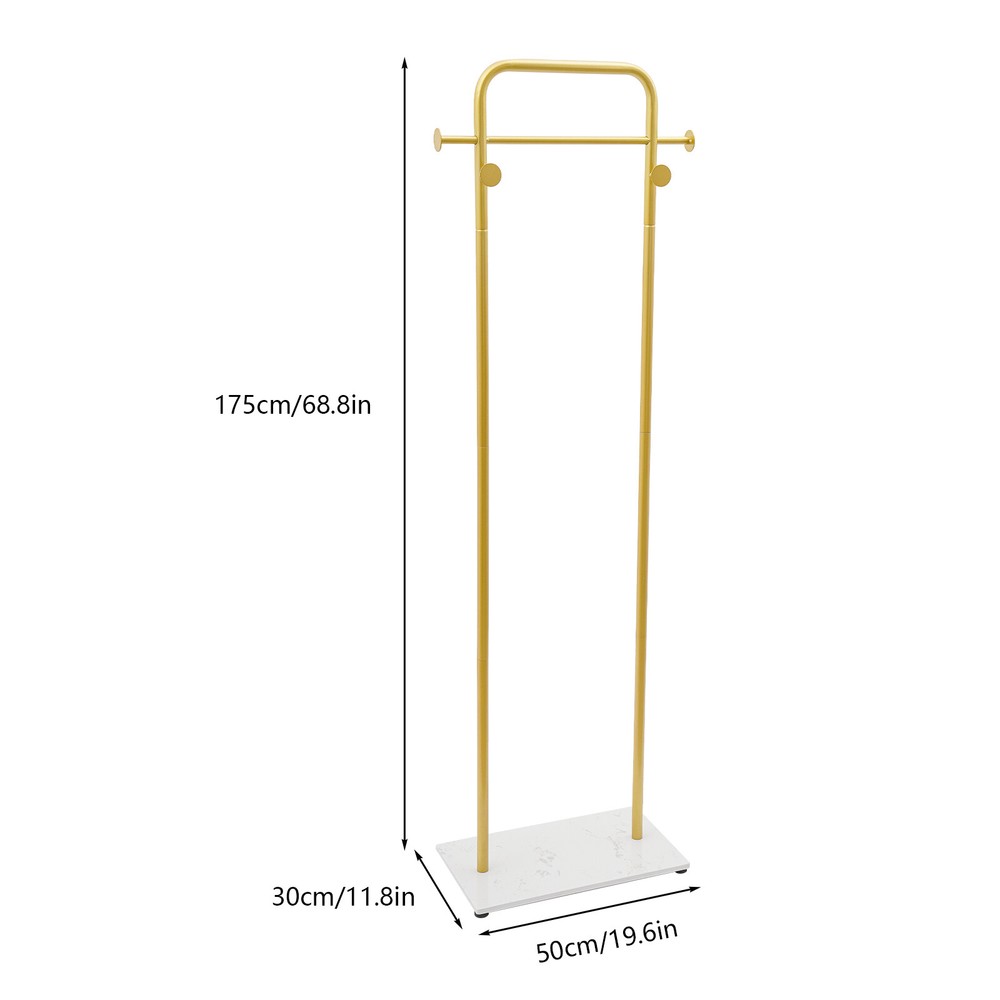 Gold Coat Rack Clothes Hanger Stand Free-Standing Organizer Shelves Load 50lbs Description A sturdy and exquisite clothes rack keeps your clothes in order and adds charm to your store or bedroom. Our product is made from high-hardness carbon steel and adopts a rectangular construction for high stability and load-bearing capacity. With its simple and nice appearance, this rack will be your ideal assistant in daily life! Key Features Sturdy and Durable: It adopts high-quality carbon steel with a high-temperature nano baking paint process to make this product high-strength and not easy to deform, ensuring long service life. Thoughtful Design: The appropriate height makes your coat drape properly and reduces the wrinkling of clothes. The open design shows clothes elegantly and allows you to access/hang clothes faster and easier than traditional closets . Large Storage Space: The top hanging rod and 4 hooks can hang your hats, bags, scarves, coats, outfits, dresses, suits, etc. to meet your daily needs. You can also place your boxes, shoes, heels, or even small plants on the bottom base . Excellent Load Capacity: With a rectangular structure, large base, and high-strength material, it can bear the weight of 50 lbs, which allows for more clothes to be hung. Neat Space: It will keep your bedroom or entrance clean and tidy without piles of clothes, while also displaying clothes distinctively and beautifully, making it a great addition to organizing your home. Nice Decoration : The simple shape design and smooth lines highlight the geometric beauty, so it can be easily integrated into a variety of decoration styles and the gold color gives the dress a sleeker texture. Simple Installation: The simple structure, complete accessories, and an English installation diagram make this product easy to install. You can enjoy the installation fun. Easy to Clean: Thanks to the simple construction and smooth surface, you can easily wipe it down with a damp rag and keep it shiny! Details Round Edges: The rounded edges and corners are not only more comfortable to touch but also care for your clothes and skin. Anti-slip Pads: 4 anti-slip pads on the bottom ensure stability when the product is standing and also avoid scratching your floor. Application It is suitable for hallways, entryways, bedrooms, bathrooms, closets, laundry rooms, garages, boutiques, shops, clothing stores, or balconies for hanging clothes, suits, scarves, bags, etc. Specification Color: Gold Style: Modern Shape: Rectangular Material: Carbon Steel Assembly Required: Yes Mounting Type: Floor Standing Surface Treatment: High-temperature Nano Baking Paint Load Bearing: About 22.68kg/50lbs Gross Weight: 8 kg/17.64 lbs Net Weight: 7.8kg/17.19lbs Package Size: 62*38*22cm/24.4*14.96*8.66 in Product Size: 49.78*30*174.75cm/ 19.6*11.8*68.8 in Package Included 1* Clothes Rack 4* Pads 1* English Installation Diagram All Accessories for Installation Notes Please note that this product does not contain any clothing. Please follow the English installation diagram to assemble this product. Please allow the slight color difference caused by the shooting light and 1-3 cm error due to manual measurement, and make sure you do not mind before ordering. Payment Delivery details Terms of sales About us Contact us Payment We accept ebay payment 。 Fees such as import duties, taxes are not included in the item price or shipping costs. These charges are the buyer's responsibility. Delivery details Shipping: 2-9 working days to: USA Terms of sales We maintain high standards of excellence and strive for hundred percent customer satisfaction. Feedback is very important to us. We hope that you contact us immediately before you give neutral or negative feedback, so that we can address your concerns. It is impossible to address issues if we do not know about them! About us Your satis faction is our ultimate goal. We work hard to earn your trust and future business. Our certified technicians have tested each item before shipping. The unit comes with 1 year limited warranty on all manufacturing defects. a) If you receive a defective item, you may return it or ask for a discount. Please contact us within 14 days after you receive the package. b) What you returned must be intact and in its original packaging as re? u. Customer is responsible for shipping costs of the returned item. c) We will cover the cost of shipping back t with the shipping rate indicated in the registration page. We will send you a new unit or refund the full payment you paid. Thank you. Contact us Business Hour Business Hour: Monday To Friday: 8:30 AM to 5:00 PM (Beijing China time) Due to time zones, our reply to your questions may not be immediately. But within above working time, we will reply your email within 24 hours. If it's non-workdays, please kindly be patient and wait till Monday. Please contact us with ebay message. Please feel free to contact us if you have any questions. Monday To Friday: 8:30 AM to 5:00 PM (Beijing China time) Due to time zones, our reply to your questions may not be immediately. But within above working time, we will reply your email within 24 hours. If it's non-workdays, please kindly be patient and wait till Monday. Please contact us with ebay message. Please feel free to contact us if you have any questions. Brand Unbranded Type Coat & Hat Racks Color Gold Style Modern Shape Rectangular Material Carbon Steel Assembly Required Yes Mounting Type Floor Standing Surface Treatment High-temperature Nano Baking Paint Load Bearing About 22.68kg/50lbs Gross Weight 8kg/17.64 lbs Net Weight 7.8kg/17.19lbs Package Size 62*38*22cm/24.4*14.96*8.66 in Product Size 49.78*30*174.75cm/19.6*11.8*68.8 in