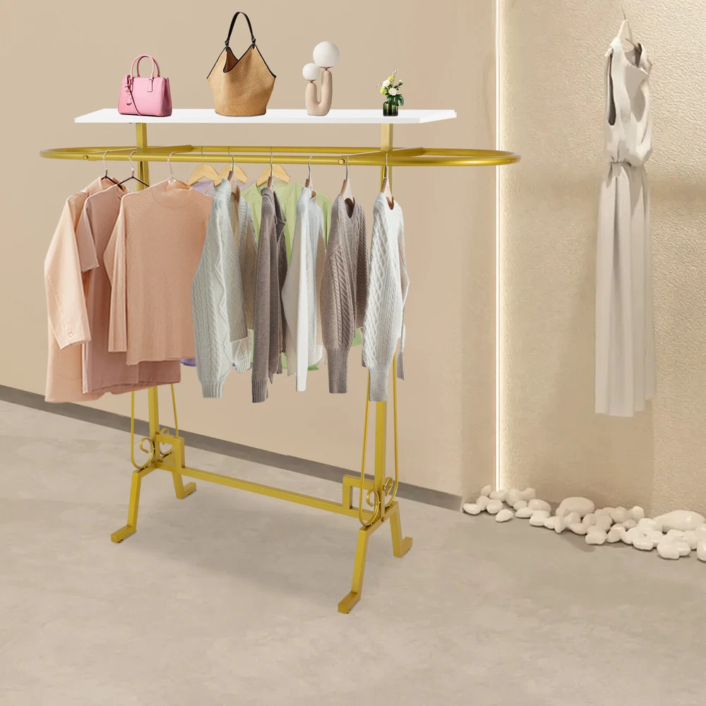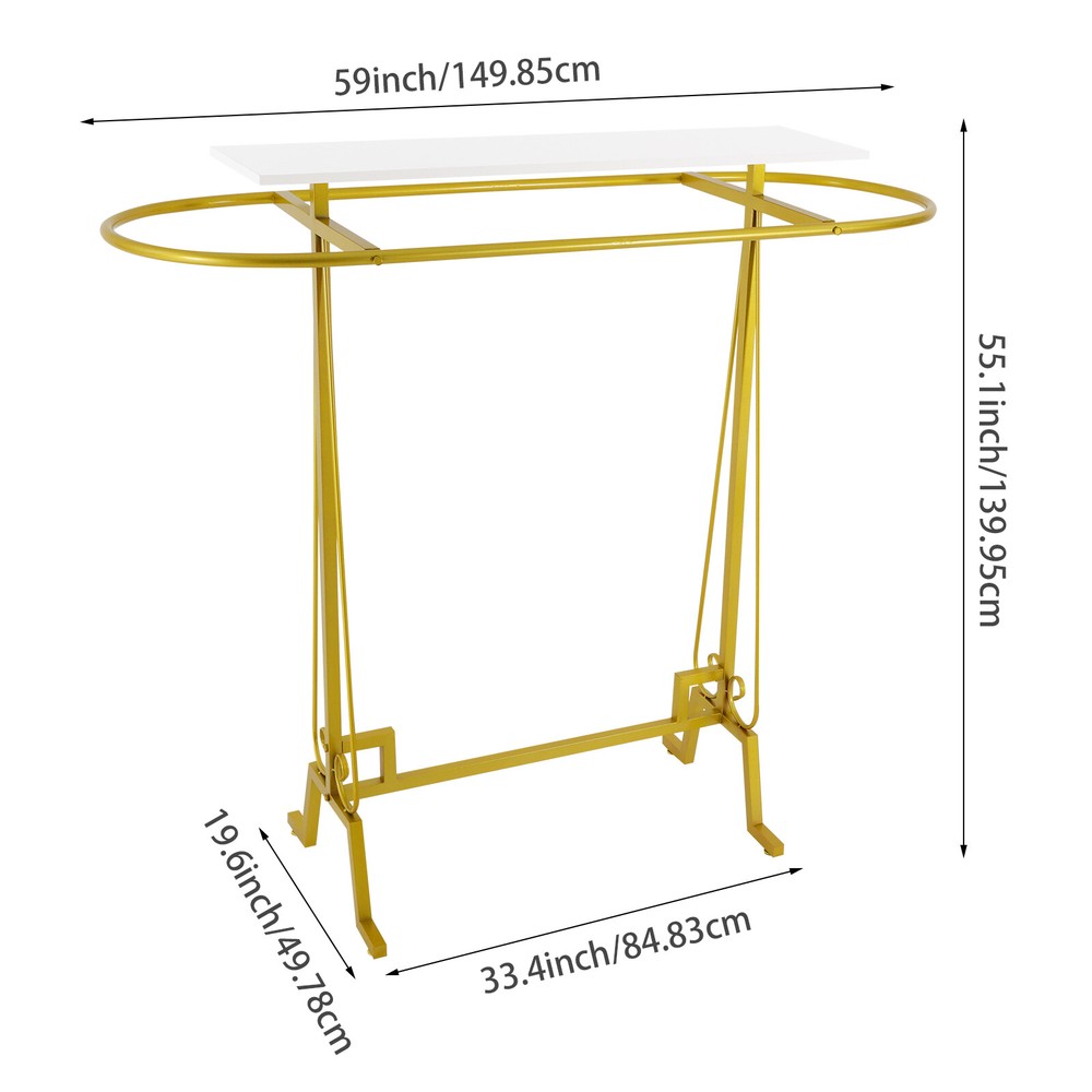 welcome Description Are you looking for a clothing display stand that is both beautiful and practical? Our clothing display stand will be your ideal choice. Compared to traditional linear display stands, it has a more fashionable and modern feel. Whether it's opening a new store or upgrading an old one, it's a good choice for you to enhance your store's image and display effect. Choosing it means choosing fashion, practicality, and convenience. Key Features Build to Last: Made of iron and density board with a high-temperature baking paint process, this product is impact-resistant, rust-resistant, and sturdy, ensuring your long-term use. Ample Space: It provides you with enough space to place a large number of clothes, making them within reach and reducing the time wasted on selecting clothes. In addition, the top is equipped with a density board panel, which can not only be used to display clothes but also to place some matching accessories such as bags, scarves, etc., providing customers with more matching inspiration. Strong Load-bearing Capacity: The thick material and sturdy construction allow it to hold up to 110.23 lbs, so you can use it with confidence. Generous Appearance: The classic color tone, ellipse shape, and smooth lines give this product a generous appearance, making it easy to blend into various places. Simple Assembly: The simple structure and complete accessories allow you to quickly assemble this product and enjoy the fun of assembly. Small Footprint: It adopts a vertical design and occupies a small footprint of 33.4*19.6 inches, which can be placed on the floor without taking up much space. Easy to Clean: It has a smooth surface and a simple structure, so you only need to wipe the dust with a towel (not included) regularly. Ideal Gift: This practical product will be a wonderful surprise for your family or friends, bringing them a more convenient life. Buy with Confidence: We stand behind all our guests and look forward to assisting you with your purchase. It is our pleasure to answer your confusion and questions. The end of the story between us is not "we sell and you buy". Details Smooth Edges: The rounded and smooth edges not only add to the texture of the product but also avoid scratching your hands or clothes. Adjustable Anti-slip Feet Pads: The foot pads can be slightly adjusted in height to adapt to uneven ground, providing stable support for this product and preventing damage to the floor. Application It is suitable for hanging and displaying various clothes, scarves, towels, etc. in clothing stores, children's clothing stores, underwear stores, retail stores, boutique stores, shopping malls, apartments, changing rooms, homes, and other places. Specifications Color: Gold Style: Modern Shape: Ellipse Material: Iron, Density Board Process: High-temperature Baking Paint Assembly Required: Yes Mount Type: Freestanding Base Size: 84.84*49.78cm/ 33.4*19.6in Upper Elliptical Shelf Length: 149.86 cm/59in Overall Height: 139.95 cm/55.1 in Package Size: 151.5*10.5*59cm/59.65*4.13*23.23 in Total Load-bearing Capacity: 50kg/ 110.23 lbs Gross Weight: 12kg/26.46 lbs Net Weight: 11.4 kg/25.13 lbs Package Included 1* Clothing Display Stand 1* English Installation Diagram All Accessories for Assembly Notes Please carefully check if the size is suitable before placing an order. Please note that this product does not include other items. Please use within the load-bearing range of the product. Please allow the slight color difference caused by the shooting light and 1-3cm error due to manual measurement, and make sure you do not mind before you order. Payment Delivery details Terms of sales About us Contact us Payment We accept ebay payment 。 Fees such as import duties, taxes are not included in the item price or shipping costs. These charges are the buyer's responsibility. Delivery details Shipping: 2-9 working days to: USA Terms of sales We maintain high standards of excellence and strive for hundred percent customer satisfaction. Feedback is very important to us. We hope that you contact us immediately before you give neutral or negative feedback, so that we can address your concerns. It is impossible to address issues if we do not know about them! About us Your satis faction is our ultimate goal. We work hard to earn your trust and future business. Our certified technicians have tested each item before shipping. The unit comes with 1 year limited warranty on all manufacturing defects. a) If you receive a defective item, you may return it or ask for a discount. Please contact us within 14 days after you receive the package. b) What you returned must be intact and in its original packaging as re? u. Customer is responsible for shipping costs of the returned item. c) We will cover the cost of shipping back t with the shipping rate indicated in the registration page. We will send you a new unit or refund the full payment you paid. Thank you. Contact us Business Hour Business Hour: Monday To Friday: 8:30 AM to 5:00 PM (Beijing China time) Due to time zones, our reply to your questions may not be immediately. But within above working time, we will reply your email within 24 hours. If it's non-workdays, please kindly be patient and wait till Monday. Please contact us with ebay message. Please feel free to contact us if you have any questions. Monday To Friday: 8:30 AM to 5:00 PM (Beijing China time) Due to time zones, our reply to your questions may not be immediately. But within above working time, we will reply your email within 24 hours. If it's non-workdays, please kindly be patient and wait till Monday. Please contact us with ebay message. Please feel free to contact us if you have any questions. Material Iron, Density Board Type Clothing Display Stand