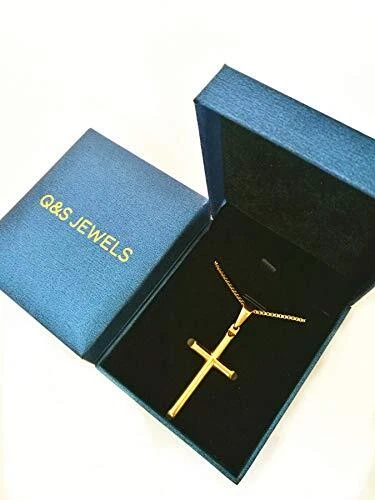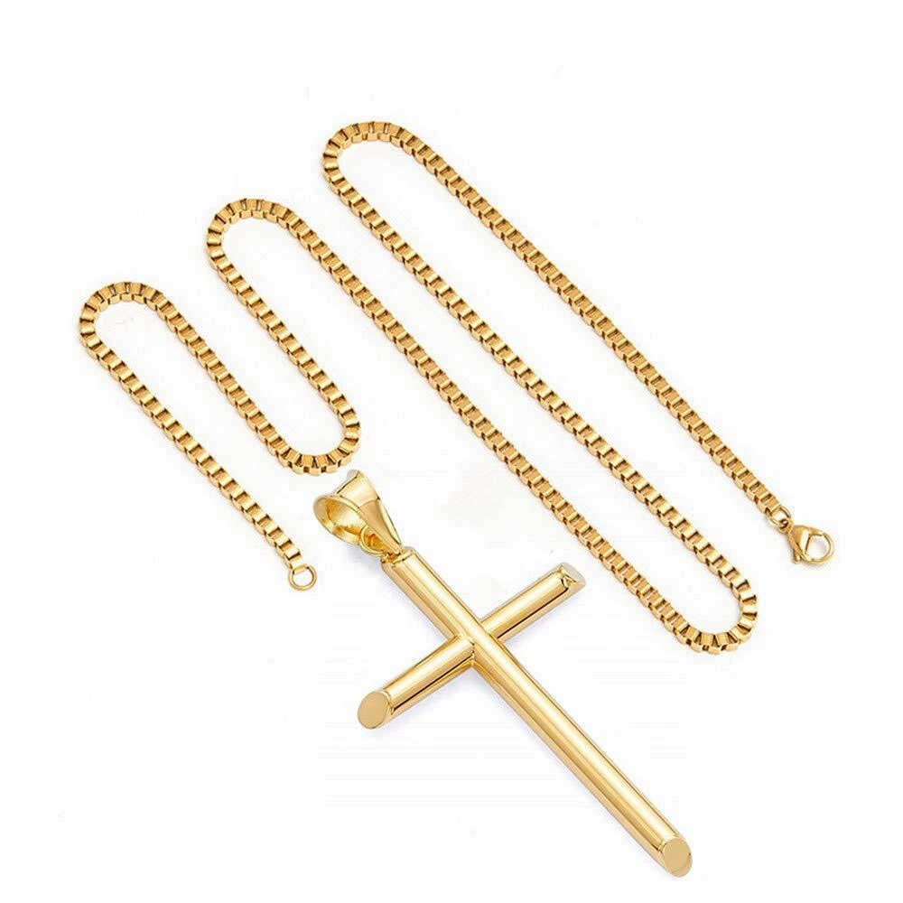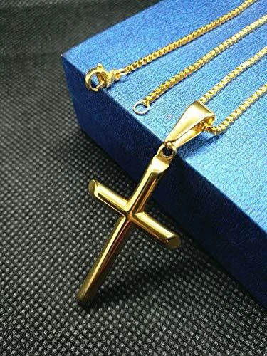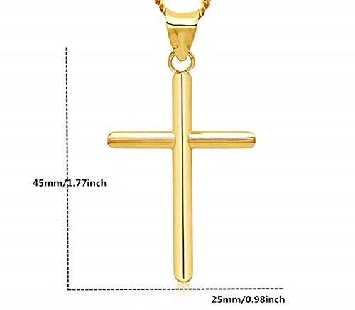 b>About gold chain jewelry Gold Stainless steel jewelry is popular and timeless classic because it is lightweight and has a trendy look, it does not tarnish and oxidize, which can last longer than other jewelries. This 18K gold plated high polished twist rope chain glows and shines like any gold chain would. it is made of real 18K gold laid over a core of semi-precious metals, there is 10 times more gold than other electroplate. This helps make it last and gives it the look of quality. Specifically,our gold filled chain necklaces are 18k gold filled with stainess steel as its based metal and a stamp of "18K" can be found in our gold filled products. Gold jewelry is a timeless classic that will never go out of style and will always be an elegant addition to any attire, but with genuine gold's value on the rise, an alternative that can offer the same appeal and quality is a must. That is what we offer with our gold filled chain necklaces. Same feel, same look as genuine gold for a fraction of its price.Our gold filled chain necklace collection comprises of a wide range of styles such as, but not limited to, curb chain, cuban link chain, rope chain, Figaro link, mariner link, wheat chain, and box chain. Most of the gold filled chain necklace styles we offer vary in width and length and are appropriate for men and women.chain size included : 16, 18, 20, 22, 24, 26 and 30 inches Caring For Your Jewelry Because of the features of the material, please keep this away from the fire, water. Please take off when you have the shower or a heavy work. When you do not wear it, wipe it gently with a clean cloth, then save it in a soft jewelry box or bag. About Customer Service We always carefully process your order once received. If any help, please feel free to contact us, we will reply in 24 hours. Sharing your pleasant experience will be highly appreciated Come with a 1.5mm wide gold box chain in 22 inches & a gold tube cross pendant (cross size :45mm wide* 25mm length),It's sized perfectly to be suitable for a man or a woman.This Cross Necklace with High Polished 18K Gold Plated , it is Stunning Shiny and feels like solid gold necklace ,Stainless steel jewelry is popular because it is lightweight and has a trendy look, it does not tarnish and oxidize, which can last longer than other jewelries,it is allergy free, nickel free What a great way to show your faith with this simple yet powerful Cross Pendant,the wearing of a cross offers the wearer protection from evil,Individuals, this shinny Cross of Eternal Love Pendant Necklace may also wear as a fashion statement necklaces Comes with Gift Box Packing, Best gift to your love ones, Perfect Gift for Mother's Day, Thanksgiving Day, Graduation, Christmas, Birthday, Wedding, Engagement, or Valentine's Day Gift,father's day gift,groomsman gift Gold chain necklace collection comprises of a wide range of styles such as curb chain, cuban link chain, rope chain, Figaro link chain,rolo chain and cross pendant necklace After-sales service : Contact us if you have any problem. Within 90 days for the quality problem , we provide money back
