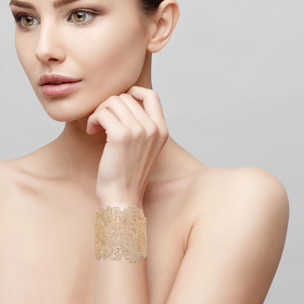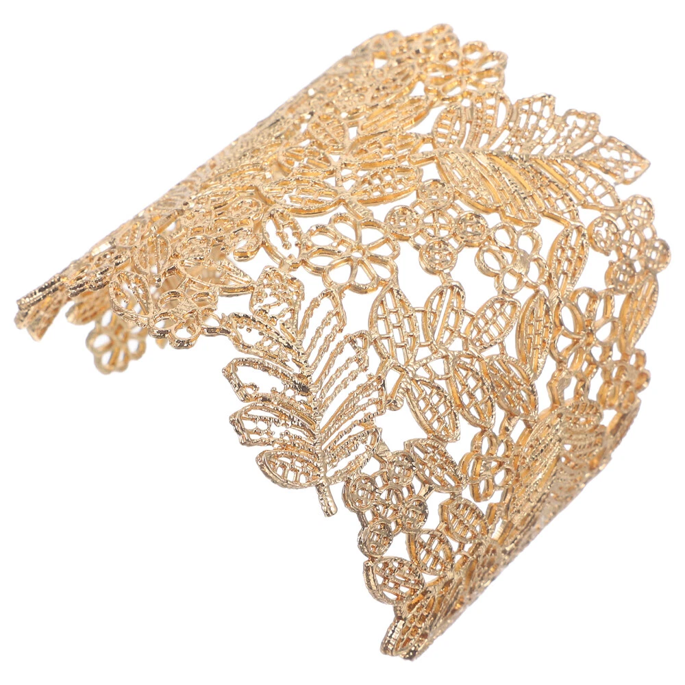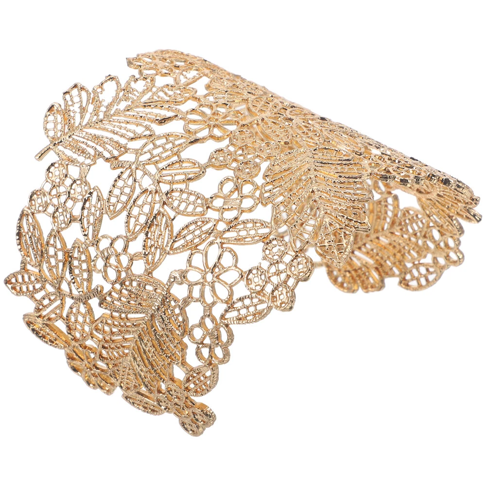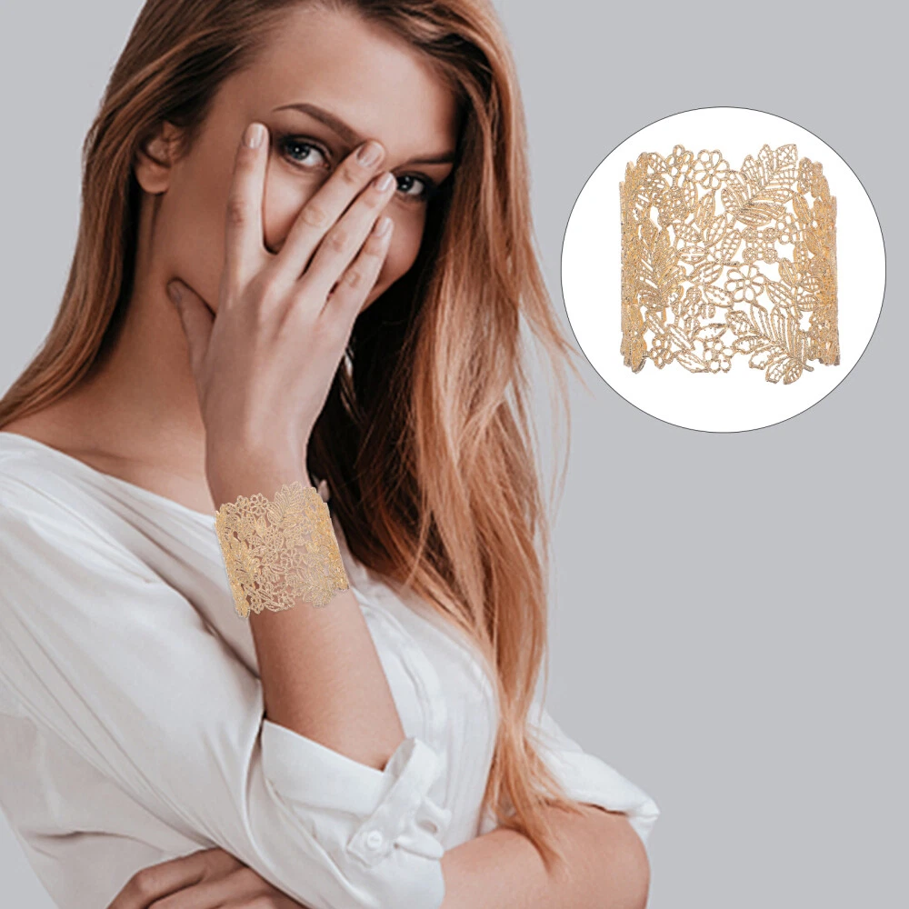 Gold Cuff Bracelets for Women Flower Open Flexible Hand Chain Women's Miss