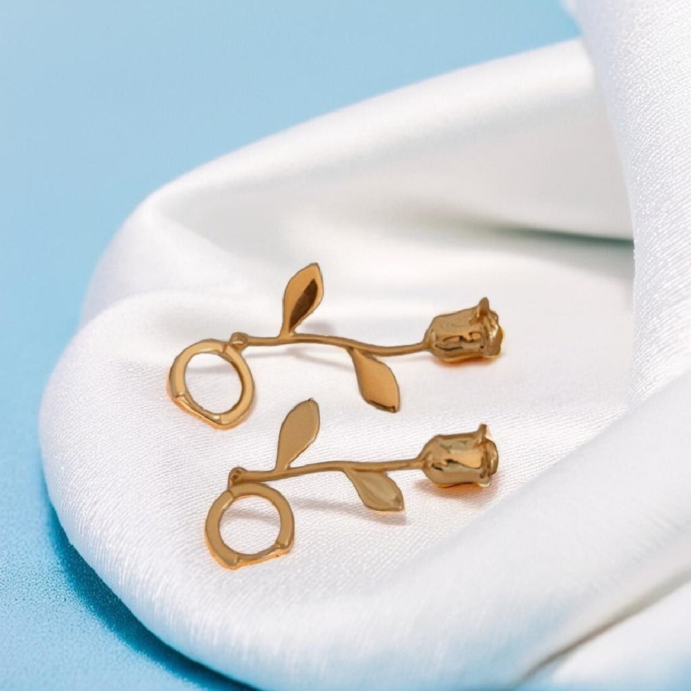 These rose earrings are absolutely stunning—perfect for adding a touch of elegance to any outfit! The gold plating and sparkling crystal give them a luxurious look, while the secure prong setting keeps the gemstones in place. Lightweight and comfortable, they’re ideal for all-day wear. The hinged closure makes them easy to put on and take off. A gorgeous gift that any girlfriend would love!