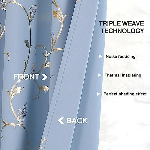Absolutely love these blackout curtains! The gold foil and floral design add a touch of elegance to my bedroom, and they block out light perfectly. The material is thick and feels high-quality, plus they help with noise and temperature. Quick delivery and hassle-free return policy—definitely recommend!