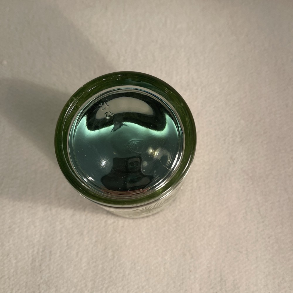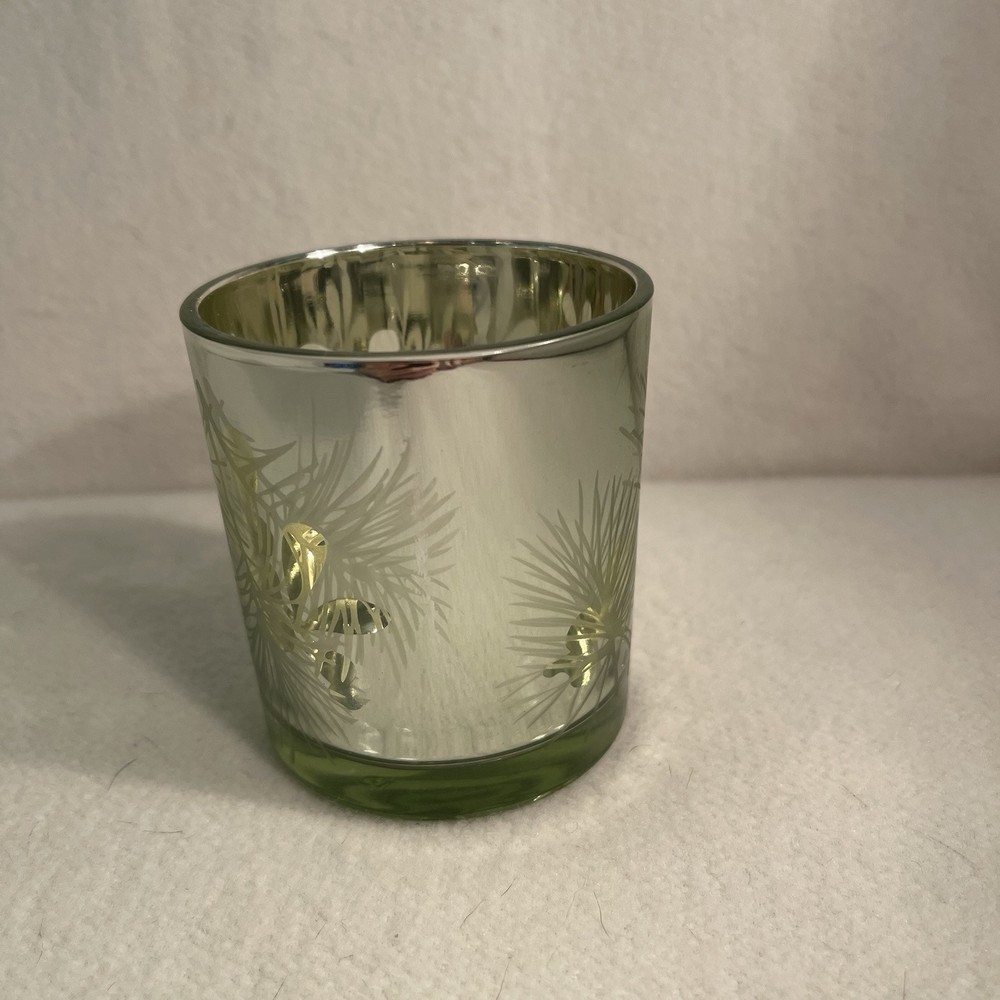 This elegant gold glass candle votive holder features a beautiful floral pattern with evergreen and berry accents. The round shape and contemporary style make it suitable for all occasions and decor. It can hold mini candles and add a decorative touch to any room. The holder is original and was manufactured between 2010-2019. The finish is gold and the material is glass. It measures 3.25" in height and 2.75" in width, and weighs 7.2 oz. Perfect for collectors or as a gift. Excellent condition. No chips or cracks.
