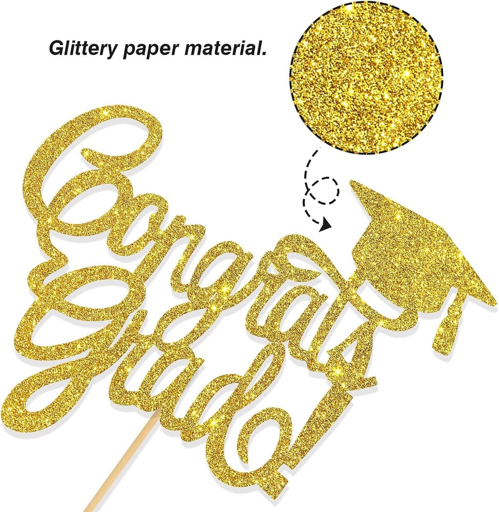 Fast Shipping On All Items 30 Days Money Guarantee Customer Support Excellent Service 100% Satisfaction Satisfaction Guaranteed Congrats Grad Cake Topper - Gold Glitter Mastered It - High School Graduation, C Specification Color Gold Item Weight 1.34 ounces Occasion Graduation Is Discontinued By Manufacturer No Package Dimensions 7.05 x 6.3 x 0.24 inches 6.3 inches x 7.05 inches x 0.24 inches. Weight: 1.34 oz Item Description Perfect for Your Graduation Party. Add A Tasteful Feelings And Memorable Moments. Surprise Your Guests. They Will Love It. Sticks and Paperboards Pre Paste Well, No Need to Assemble. Perfect to Top Your Special Event Cake! Also Use As A Photo Booth Prop. 🛒⭐ If you like it, please join your shopping cart quickly! If you have any questions about the product, please feel free to inquire! About us We offer the best prices around on high quality products. Our E-store includes media such as books, movies, music and games while offering electronics, toys, sporting apparel, clothing, tools, general home, garden items and more. Shipping We are always working hard to ensure your package arrives as soon as possible. Please understand that some factors like weather, high postal traffic, and the performance of shipping companies are outside of our control. We offer free shipping to the lower 48 states and ship within 2-3 business days of payment, usually sooner. We do not accept P.O. Boxes. Please provide a physical address. For shipping outside of the continental USA, we only use eBay's Global Shipping Program.The item is shipped to KY and then sent to the rest of the world. International customers are responsible for all duties and taxes. Continue to check out to calculate costs for shipping the item to your country. Messages regarding eBay's Global Shipping Program MUST be directed at eBay EXCLUSIVELY. Returns We offer a 30-Day Return Policy on items in which you are not completely satisfied with. You have the option of a full-refund or an exchange of the item. No returns are available on items shipped outside of the USA Satisfaction We try over very best to make sure every customer is completely satisfied. If there's a problem, message us! We're happy to help. Payment Options Shop With Confidence