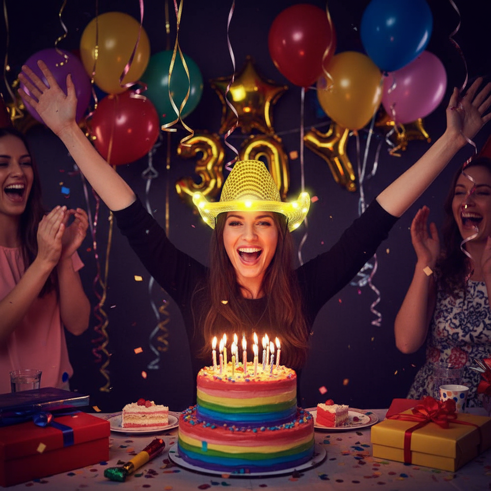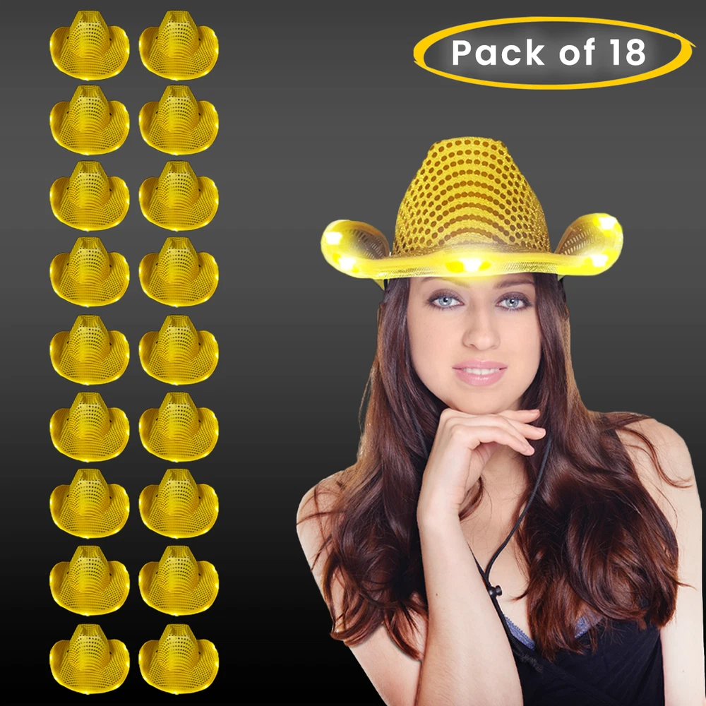 Pack of 18 Gold LED Cowboy Hats β Party Essential π₯ Gold LED Light Up Cowboy Hat β Flashing Western Party Costume Hat Gold LED Light Up Cowboy Hat β Stand out at any party with this flashy western-style hat. Features bright LED lights, lightweight design, and eye-catching gold finish. Perfect for parties, concerts, festivals, Halloween, and fun costume events β¨ Why This Pack is Perfect: π‘ LED Lights That Pop: Flashing or steady mode for epic vibes π Sparkling Gold Design β sparkle from every angle πͺΆ Lightweight & Comfortable β party all night without hassle π§ Adjustable Fit β one size fits most, perfect for everyone β»οΈ Durable & Reusable β built for multiple events π Ideal for groups β 18 hats mean everyone can shine together! π Party-Ready Features: Turn heads instantly β perfect for photos and social media Fun for kids, teens, and adults alike Coordinate with friends for maximum party impact Easy to activate β just switch on and glow! Donβt miss out β grab this Pack of 18 Gold LED Cowboy Hats today and make your group events truly unforgettable! Buy Now β Free Shipping!
