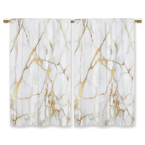 Return Policy Fast Delivery Trusted seller Gold Marble Kitchen Curtains Golden Luxury Abstract Small Short Cafe Window Curtains White Modern Texture Ink Rod Pocket Bathroom Window Drapes Treatment Tier Curtains 2 Panels (26x36 Inch) Product Description 【Modern Design】 This gold marble cafe curtains modern design in white & gold color matched, add elegance to window treatments and overall appearance of the room. 【Ready Made】 Package includes 2 panels curtains, each panel measuring 26" width x 36" length. Each panel has 2.4 inch high pole pocket, which works well with tension rods or normal rods, easy to install and slide. It is recommended to use a rod with a diameter of 1.2 inch or less. 【Light Filtering】 The small curtains have just the right thickness to let in some light and also provide privacy. They will block a sun reflection, but not all of the light. You can cover the lower portion of your windows to provide privacy or used alone on shorter length windows, a great highlights to the kitchen. 【Easy Care】 Please machine wash separately with cold water, using mild detergent. Tumble dry low and no bleach. Simple iron is suggested before use. 【Nice Service】 Decorate your home, high quality. Nice after-sale service. Your 100% satisfaction is our first priority. Just contact customer support if you would like to return our products for any reason. Shipping Returns Payment Shipping Shipping is FREE to all addresses other than APO/PO boxes in the lower 48 states. All our stock ships from US-based warehouses. Shipped via USPS or UPS (depending on location and package weight) Unless stated otherwise, all orders will ship within 24-72 hours of your payment being processed. Check our feedback to see the great reviews of FAST shipping we offer. Returns Seller does not accept returns Payment We currently accept payment via eBay managed payments only. Once payment is cleared, we will dispatch your shipment within 1-3 business days. Please refer to the "Shipping" tab for more information regarding shipping speed to your destination.