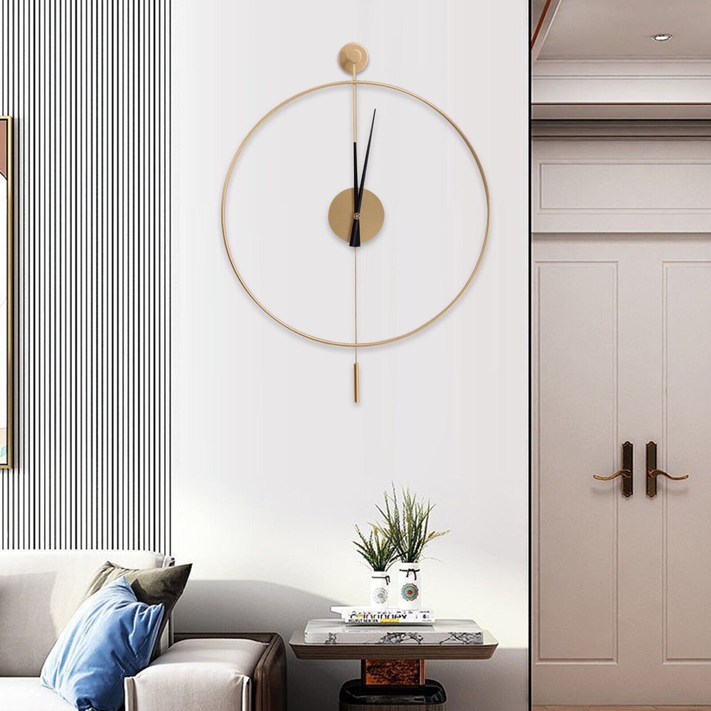 Specification Material: Iron Pointer Material: Aluminum Color: Gold Style: Modern Shape: Round Surface Treatment: Baking Paint Power Source: Battery Powered Number of Batteries Required: 1*AA Battery(Not Included) Mounting Type: Wall Mount Operation Mode: Silent Quartz Movement Base Diameter: 7cm/2.76in Dial Diameter: 50cm/20in Packing Size: 53*7.3*54cm/20.86*2.87*21.25in Net Weight: 1kg/2.2lbs Gross Weight: 1.2kg/2.64lbs Package Included 1* Wall Clock 1* Base 1* Pendulum 1* Non-marking Nail 2* Long Screws Modern Round Wall Clock Gold Silent Quartz Movement Hollow Design Living Room Description Are you frustrated with the old wall clock at home that keeps ticking? Do you want a quiet, stylish, and durable wall clock? With its high-quality silent movement and metal hands, this wall clock allows you to enjoy every second of silent dreaming. If you are tired of boring walls or want to have more fun in life, then this unique clock will be your ideal choice! Key Features High-quality Materials: This wall clock is made of high-quality iron, which is wear-resistant and durable, ensuring a longer service life. Baking Paint Process: The metal surface is baked lacquered to give it a brilliant and colorful appearance and prevent it from fading. It is also anti-corrosive and rust-proof, prolonging its service life. Accurate Timekeeping: It is equipped with a high-quality silent quartz movement that runs steadily to guarantee accurate timekeeping, giving you a better user experience. Low Noise: The clock features a silent quartz movement that runs smoothly and without harsh ticking sounds. It will keep your family free from noise and ensure a good and comfortable night's sleep. Unique Design: The hollow design of this wall clock highlights a mysterious, elegant and minimalist style. This wall clock can match many modern style home decorations and it can add a distinctive touch to your home. Great Gift Choice : This exquisite wall clock is an ideal gift for parents, friends, teachers, leaders and relatives. It will be the most practical and memorable gift they will ever receive. Time Witness: The wall clock records every second of the warm moments you spend with your family. It is the witness of your good memories. Easy to Clean: It is finished with a baked-on lacquer which gives it a smooth, flat surface for easy cleaning. You can easily wipe off dust and stains with a damp rag. Easy to Install: There are reserved a hanging slot on the back of the base for easy installation. You only need a few simple steps to complete the installation. Excellent After-sales Service: We aim to provide quality products and services. If you have any problems, please feel free to contact us, and we will reply and solve the problem for you as soon as possible. Details Dial Without Numbers: The dial of this wall clock does not have numbers, making the wall clock more simple and generous overall. Metal Pointers: In contrast to plastic pointers, metal pointers are not only stylish and beautiful but also durable and resistant to breakage. Unique Pendulum: The pendulum design on the wall clock is a decorative element and also adds a touch of energy to a quiet space. Application This wall clock is suitable for the living room, hallway, office, study, bedroom, dining room, hall, exhibition hall, and other occasions. It is also an ideal gift choice for your friends or your family. Installation 1. Determine the position of the non-marking nails. 2. Fix the non-marking nails with a hammer. 3. Align the hooks and hang the wall clock. 4. Complete the installation. Specification Material: Iron Pointer Material: Aluminum Color: Gold Style: Modern Shape: Round Surface Treatment: Baking Paint Power Source: Battery Powered Number of Batteries Required: 1*AA Battery(Not Included) Mounting Type: Wall Mount Operation Mode: Silent Quartz Movement Base Diameter: 7cm/2.76in Dial Diameter: 50cm/20in Packing Size: 53*7.3*54cm/20.86*2.87*21.25in Net Weight: 1kg/2.2lbs Gross Weight: 1.2kg/2.64lbs Package Included 1* Wall Clock 1* Base 1* Pendulum 1* Non-marking Nail 2* Long Screws Notes Please do not use too many alkaline power batteries, which affect the life of the movement and sometimes even the accuracy of the timekeeping. Please note that the package does not include a AA battery, so you need to purchase them separately. Please allow the slight color difference caused by the shooting light and 1-3 cm error due to manual measurement, and make sure you do not mind before ordering. Payment Delivery details Terms of sales About us Contact us Payment We accept ebay payment 。 Fees such as import duties, taxes are not included in the item price or shipping costs. These charges are the buyer's responsibility. Delivery details Shipping: 2-9 working days to: USA Terms of sales We maintain high standards of excellence and strive for hundred percent customer satisfaction. Feedback is very important to us. We hope that you contact us immediately before you give neutral or negative feedback, so that we can address your concerns. It is impossible to address issues if we do not know about them! About us Your satis faction is our ultimate goal. We work hard to earn your trust and future business. Our certified technicians have tested each item before shipping. The unit comes with 1 year limited warranty on all manufacturing defects. a) If you receive a defective item, you may return it or ask for a discount. Please contact us within 14 days after you receive the package. b) What you returned must be intact and in its original packaging as re? u. Customer is responsible for shipping costs of the returned item. c) We will cover the cost of shipping back t with the shipping rate indicated in the registration page. We will send you a new unit or refund the full payment you paid. Thank you. Contact us Business Hour Business Hour: Monday To Friday: 8:30 AM to 5:00 PM (Beijing China time) Due to time zones, our reply to your questions may not be immediately. But w