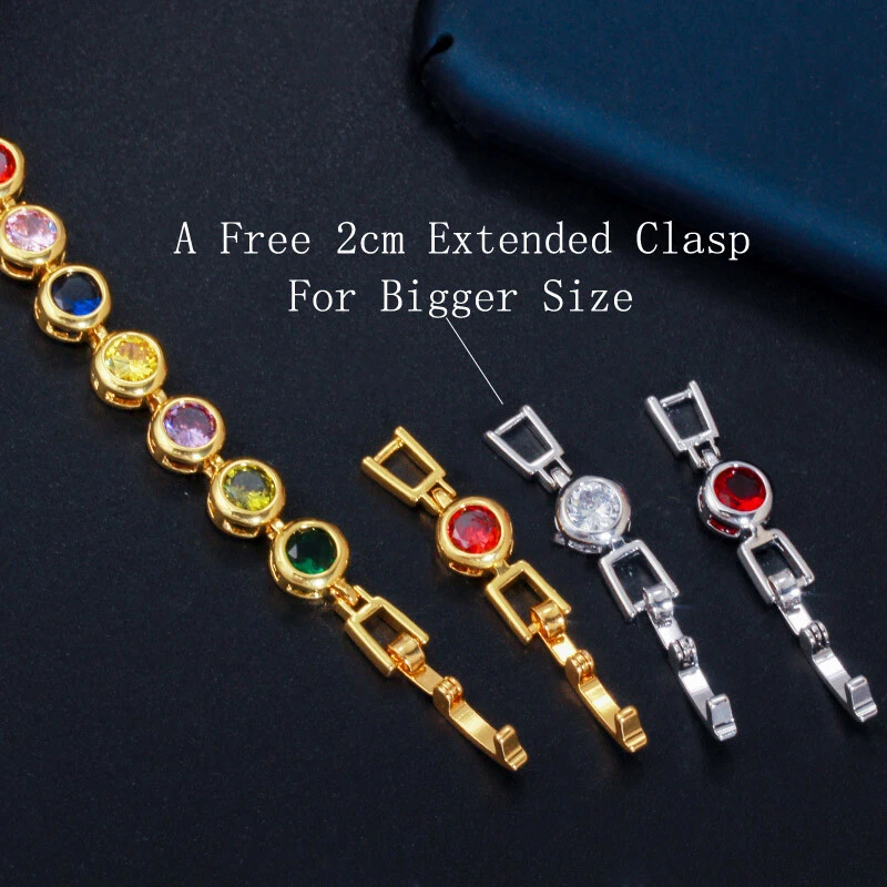 Gold Plated CZ Multicolored Women Round Tennis Bracelet Wristband Chain Jewelry Specifications: 1. Condition: New 2. Material : Cubic Zirconia 3. Bracelet Length :18 cm + 2.4 cm extended clasp Features: 1. Cubic Zirconia High Quality Material - Diamond-like Brilliance , Prong Setting and CZ Stone are stable. 2. It will be an Ideal Gift for Your Girlfriend, Wife, Fiancee, Daughter, Mother, Your Special Someone, or just Yourself. 3. Wearing Occasion: Daily wear, Shopping , Anniversary , Party , Wedding , Christmas , New Year , Valentine's Day ,etc. Package Includes: 1Pc Bracelet Payment Delivery details Terms of sales About us Contact us Payment 1. We only accept payment by Paypal 2. We request you pay within 5 days of the first auction close. Failure to do so may cause our automated dispute system to file disputes for unpaid items Delivery details We only send items to the registered eBay address.Items will be shipped within 2 business days from the date payment is received (not include public holiday and weekend) . As per eBay regulations, import duties, taxes, and customs charges are the buyer's responsibility. Please check with your country's customs office to determine what these additional costs may be prior to bidding or buying. Terms of sales After-Sale Please contact us to request a return/replace/refund authorization.It will be best if you use ebay message to contact me. 1, Return and replacement request is available only the requests within 30 days after parcel received. 2, Returning the item as the same condition as received. Situation and solution Defectives ---Please contact us and provide a photo of the defective part. After situation confirmed,we will offer you refund/return/replacement according to the situation Not as Described ---Please contact us and provide a photo of the wrong part. After situation confirmed,we will offer you refund/return/replacement according to the situation Not Received ---Please undersatnding shipping on the way was out of our control ,because of the busy shipping season,holidays,bad weather or force majeure etc. It may be delay for days. But if it took too much time and not deliveried, Please message me, I will offer you solution for it. About us Working time: Chinese time(Eastern eight zones):Monday to Friday ,9:00 am to 6:00 pm. We do not work on chinese legal holiday. Message reply: We will reply all messages within 24 hours of business time. Contact us Please contact us via ebay message, it was the best way for both you and us to solve problems. Any questions or anything you need, please feel free to contact us.