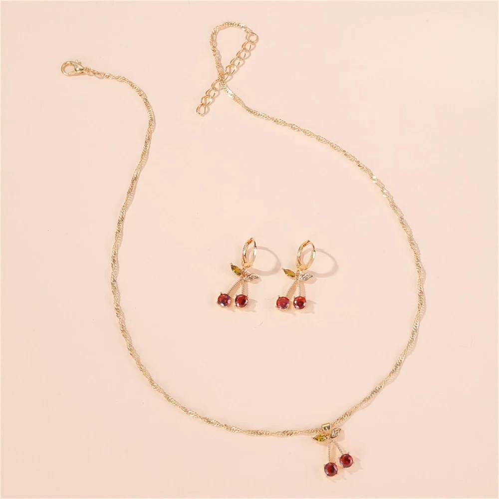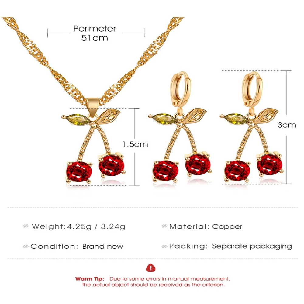 Gold Plated Red Cherry Crystal Dangle Earrings Necklace for Women Unique Summer Tropical Sweet Fruits Green Leaf Chic Rhinestones Cubic Zirconia Huggie Hoop Earrings for Wedding Bride Prom Party Birthday Anniversary Mother's Day Fashion Jewelry Accessories Product Details Color: Cherry jewelry set Brand: Spiritrain MPN: Does not apply UPC: Does not apply EAN: Does not apply Department : womens Date First Available : August 3, 2023 Brand, Seller, or Collection Name: Spiritrain Metal: Copper Material: Copper Gem Type: Crystal Chain: Cable Clasp: Lobster Clasp Back finding: Hinged Hoop Number of stones: 1