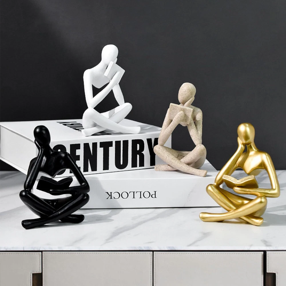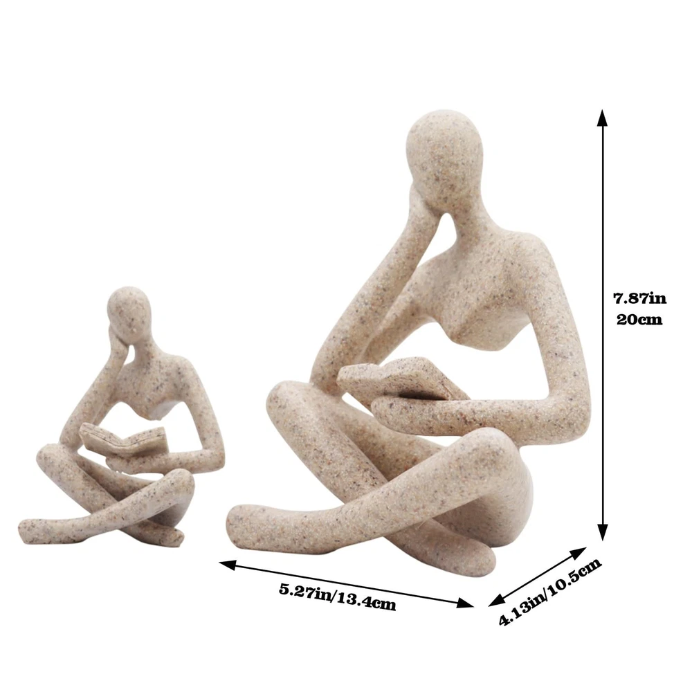 Intricate Craftsmanship: This golden reading woman figurine exhibits meticulous detailing, a lustrous finish, and a sturdy, enduring build, showcasing exceptional artistry. Contemporary Aesthetic: Standing at 7.87 inches in height, 5.27 inches in length, and 4.13 inches in width, it's a strikingly modern abstract art piece, lending an air of refinement to any setting. Versatile Placement: Whether adorning bookshelves, gracing bedside tables, or accenting offices and living spaces, this sculpture is a versatile choice for sophisticated home decor. Premium Resin Construction: Crafted from high-grade resin, this golden statue not only radiates opulence but also ensures longevity, maintaining its exquisite allure over time. Unique and Thoughtful Gift: As a distinctive and imaginative present, this thinker statue makes for a cherished gesture on occasions ranging from birthdays to weddings, elevating the ambiance of any environment.