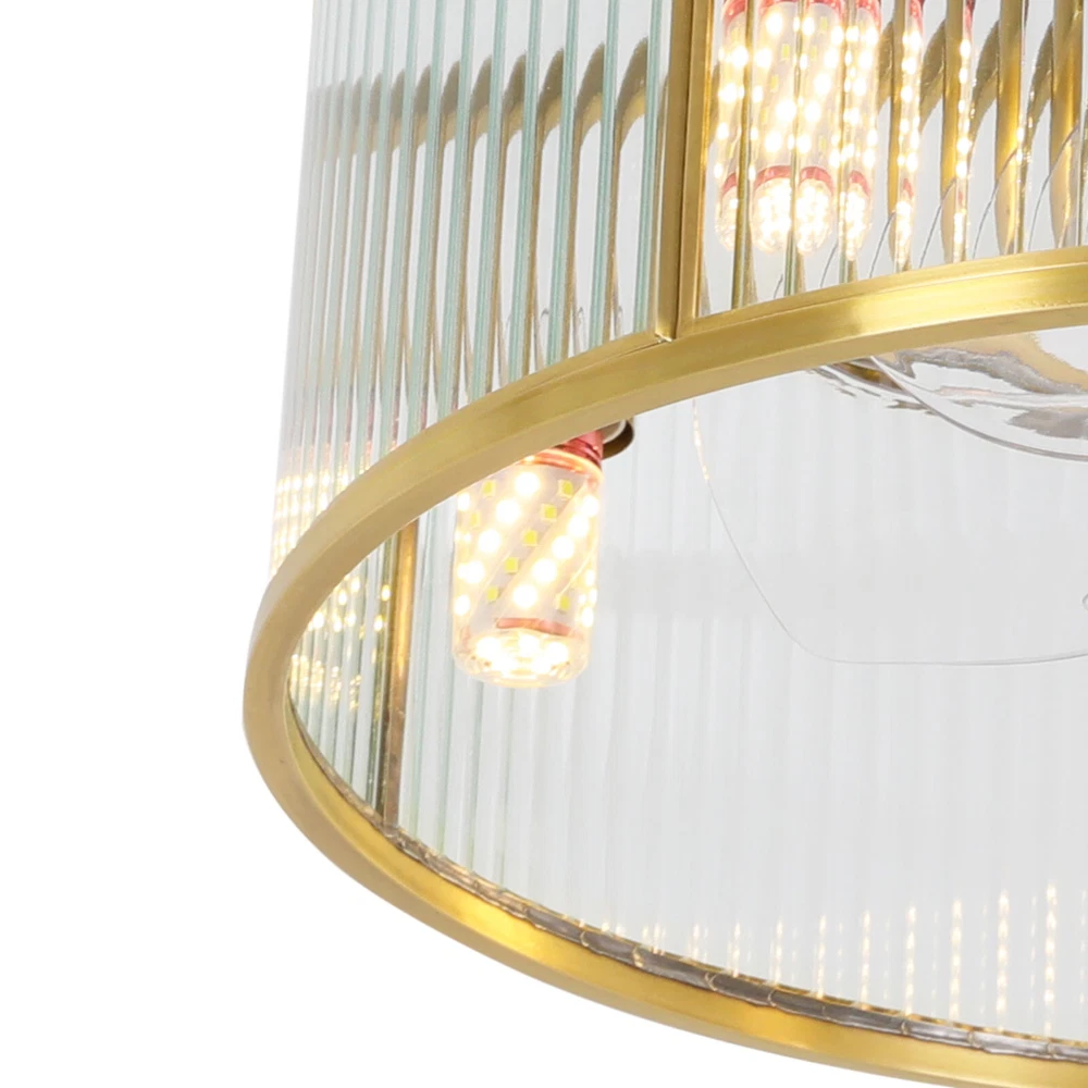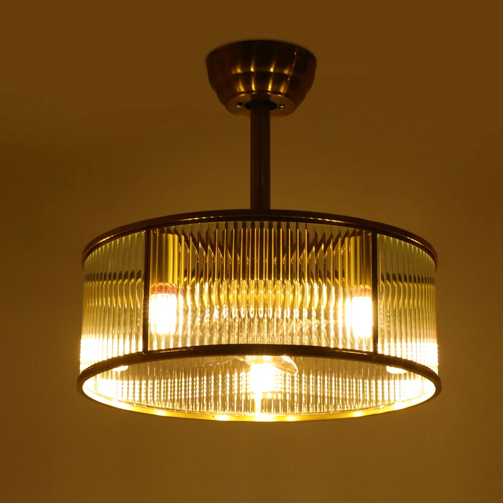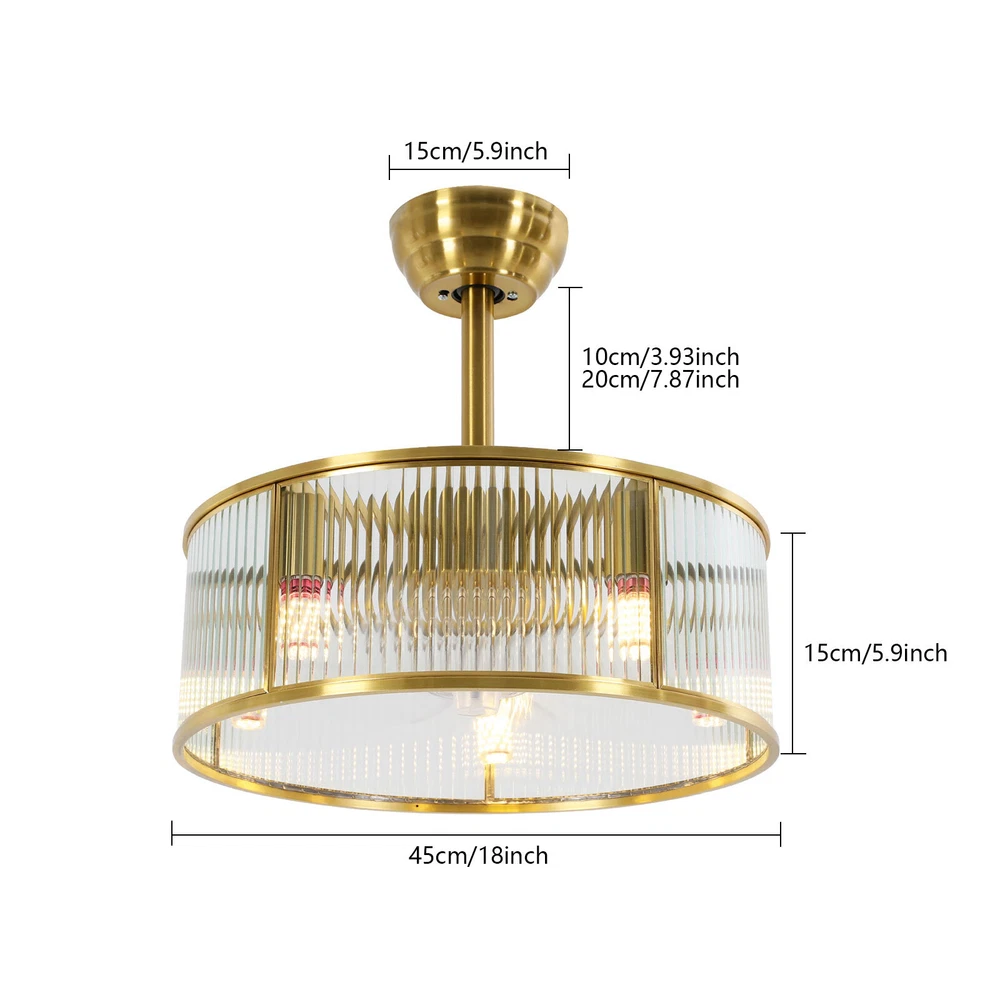 Gold Ceiling Fan Light Indoor Ceiling Fan Lamp for Bedroom with Remote Control Description This ceiling fan light can not only bring light but also allow you to enjoy the coolness. With its generous appearance, it can be integrated with different decoration styles, adding a beautiful visual effect. The adjustable wind speed can meet your various needs. It is not only a lamp, but also a beautiful decorative piece. Key Features Build to Last: Made of pure copper and glass, with an electroplating process, this product is impact-resistant , rust-resistant, and reliable, ensuring your long-term use. Good Lighting Effect: This product supports 5 E26 bulbs (not included), and the high-transmittance lampshade with a semi-open structure that will not block lights, providing great lighting for your room. Healthy and Energy-saving: This product provides more comprehensive air circulation and cooling, thereby reducing the frequency and time of air conditioning use, saving energy, and reducing expenses. It can avoid direct blowing and reduce the risk of air conditioning diseases. Embrace Smart Life : With the remote control, you can freely adjust the wind speed (6 gears) and set time (1/2/4/8 hour) while lying in bed, avoiding getting up and walking to the switch every time you want to change its settings, reducing catching a cold, and saving electricity bills. Reversible Function: The normal mode of the fan can bring coolness in summer. You can also reverse the direction of the fan in winter, blowing hot air from the top into the room and increasing the indoor temperature. Generous Appearance: The gold frame, circular shape, and the water ripples design of the lampshade give this product a generous and delicate appearance, making it an eye-catching decoration for your home. Exquisite Gift: With good performance and generous appearance, it can be used as a housewarming gift for parents, friends, and lovers so that they can also enjoy a more exquisite life. Simple Clean-up: With its simple construction and smooth surface, you can simply wipe off surface dust with a soft cloth. Details Round Base: The 5.9" diameter round base increases stress area, and ensures stable support for the light body without falling easily. Standard E26 Lamp Holders: They support the use of LEDs, Halogens, etc., making it very convenient for you to purchase and replace. Selectable Suspension Rods: The 3.93" and 7.87" suspension rods provide you with the flexibility to install this product according to your needs. Application With an applicable area of 107.64-161.46 ft² , it is suitable for a bedroom, living room, study, reading room, living room, cafe, store, bar, office, lounge, library, club, hotel, kindergarten, and so on. It is not only suitable for indoor lighting but also can be used as a ceiling fan. Specification Material: Glass, Pure Copper Process: Electroplating Motor Type: Pure Copper Motor Color: Gold Style: Modern Shape: Round Efficiency: E Assembly Required: Yes Mounting Type: Ceiling Mount Indoor/Outdoor Usage: Indoor Control Method: Remote Control(Included) Battery Type: 2* AAA Batteries(Not Included) Light Source: 5* E26 Bulbs(Not Included) Single Bulb Max. Power: 12W Number of Fan Blades: 5 Wind Speed Gears: 6 Voltage: 110V Timing: 1/2/4/8H Noise: < 35 dB Applicable Area: 10-15m²/107.64-161.46ft² Base Diameter: 15cm/5.9in Short Rod Length: 10cm/3.93in Long Rod Length: 20cm/7.87in Lampshade Size(D*H): 45*15cm/18*5.9in Package Size: 51*51*24cm/20.08*20.08*9.45in Gross Weight: 6.4kg/14.11lbs Net Weight: 5kg/11.02lbs Package Included 1* Ceiling Fan Light 1* Remote Control 1* English Manual All Accessories for Installation Notes Please check the dimensions of the product before ordering to ensure it fits your home. Please note that this product does not include 5 E26 bulbs, you need to purchase them by yourself. Normally, the expansion screw will blow up after the force is applied. Please read the operating manual completely before use. And pay particular attention to the safety instructions included. Please do not install the light next to the air conditioner or heater to avoid rusting due to moisture, which will affect the service life of the light. Please wear electric insulation gloves (not included) and avoid scratching the surface of the lamp and the electric wire when installing. Please make sure that the power supply has been cut off before installation, and conduct a power test before installation. Please install it by a licensed electrician if necessary. Please clean the light regularly. Please cut off the power supply when you clean the light. Please wipe with a soft cloth, it is not suitable to clean with cleaning agents. Please allow the slight color difference caused by the shooting light and 1-3cm error due to manual measurement, and make sure you do not mind before ordering. Payment Delivery details Terms of sales About us Contact us Payment We accept ebay payment 。 Fees such as import duties, taxes are not included in the item price or shipping costs. These charges are the buyer's responsibility. Delivery details Shipping: 2-9 working days to: USA Terms of sales We maintain high standards of excellence and strive for hundred percent customer satisfaction. Feedback is very important to us. We hope that you contact us immediately before you give neutral or negative feedback, so that we can address your concerns. It is impossible to address issues if we do not know about them! About us Your satis faction is our ultimate goal. We work hard to earn your trust and future business. Our certified technicians have tested each item before shipping. The unit comes with 1 year limited warranty on all manufacturing defects. a) If you receive a defective item, you may return it or ask for a discount. Please contact us within 14 days after you receive the package. b) What you returned must be intact and in its original packaging as re? u. Customer is responsible for shipping costs of the returned item. c)
