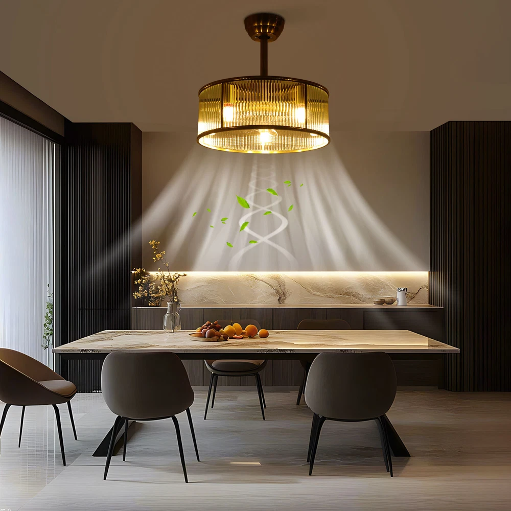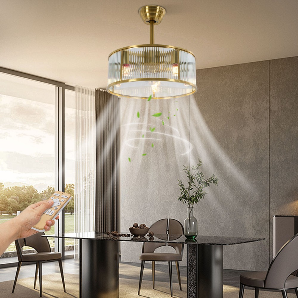 This stylish gold ceiling fan light is a game-changer for any bedroom! The elegant design blends seamlessly with modern decor while the powerful airflow keeps the room cool. Love the remote control for easy adjustment of fan speed and brightness—no more getting up to tweak settings. The high-quality construction feels durable, and the soft glow from the glass lampshade creates a cozy ambiance. Perfect for hot summer nights or year-round airflow. A fantastic combo of function and fashion—highly recommend!