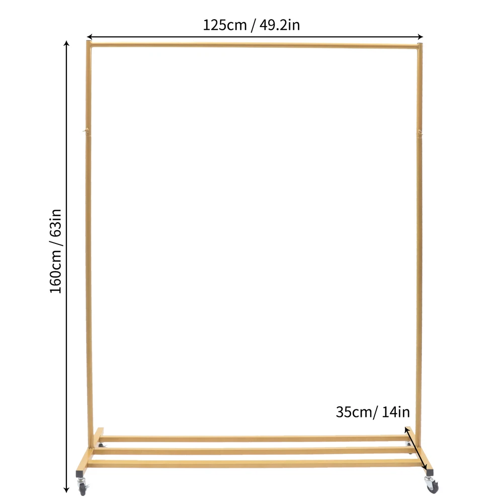 Specification Color: Gold Material: Iron Product Usage: Suitable for Clothes Storage, Clothes Displaying, Home Decoration Style: Industrial Vintage Style Surface Treatment: High-temperature Baking Paint Load-bearing Capacity: Almost 5kg/11.02lbs Package Size: 118*25*6cm/46.46*9.84*2.36in Product Size: 125*35*160cm/49.2*14*63in Product Weight: 4.4kg/9.7lbs Package Included 3*Main Frames 3*Bottom Frames 4*Universal Wheels Gold Rolling Garment Rack Metal Clothing Rack Freestanding Clothes Display Rack Description Are You Still Worried About the Smell and Crease That Appear When the Clothes Are Folded in the Closet for a Long Time? If so, You Might Consider This Clothing Garment Rack. It Is Made of High-quality Iron Pipe. It Is Finished with a Lacquer Process, Making It Resistant to Oxidation and Fading. It Keeps Your Clothes Neat and Tidy Without Ironing Creases. Specification Color: Gold Material: Iron Product Usage: Suitable for Clothes Storage, Clothes Displaying, Home Decoration Style: Industrial Vintage Style Surface Treatment: High-temperature Baking Paint Load-bearing Capacity: Almost 5kg/11.02lbs Package Size: 118*25*6cm/46.46*9.84*2.36in Product Size: 125*35*160cm/49.2*14*63in Product Weight: 4.4kg/9.7lbs Package Included 3*Main Frames 3*Bottom Frames 4*Universal Wheels Key Features High-quality Material: This Clothing Garment Rack Is Made of High-quality Iron Pipe with High-temperature Baking Paint, Which Is a Good Thing for Long Time Usage. Excellent Load-bearing Capacity : the Clothing Garment Rack Is Made of Sturdy Iron Pipe, so It Has an Excellent Weight-bearing Capacity of 11.02lbs . Such Excellent Load-bearing Capacity Allows You to Place Heavy Winter Clothes Without Worry. Unique Appearance: This Clothing Garment Rack Is a Wise Choice for You. the Rack's Bright Gold Color and Smooth Surface Make This Rack a Unique Modern Style. Its Overall Shape Is Modeled on Industrial Piping, Which Is Unique and Beautiful. Hanging Clothes: This Clothing Garment Rack Has a Large Hanging Space with a 49.2inch Hanging Rod. Hanging Clothes on the Rack Will Not Only Make the Clothes less Wrinkled but Also Ensure the Neatness of the Room. This Open Design Is Also Convenient for You to Pick up Clothes. Easy to Move : It Comes with 4 Universal Wheels, Allowing You to Move It Around As You Please. Therefore, You Can Easily Move It from the Bedroom to the Living Room. Easy to Install : It Has a Simple Structure with a Full Range of Accessories, Making It Easy to Install. All You Need to Do Is Simply Assemble It and Stand It up. Detachable Design : the Iron Tube of This Clothing Garment Rack Is Designed to Be Removable, so You Can Disassemble It into Parts That Don't Take up Much Space, Making It More Convenient to Carry and Store. Taking up less Space: It Takes Full Advantage of Vertical Space and Occupies Only 49.2*14in of Floor Space, Making It the Perfect Closet Choice for Small Living Spaces. Easy to Clean : the High-temperature Baking Paint Process Makes Its Surface Very Smooth, so It Is Very Easy to Clean. You Just Need to Wipe It with a Rag to Make It Look New. Details High-temperature Baking Paint : It Is Painted at High Temperatures, Not Only Smooth and Delicate but Also Wear-resistant and Moisture-proof , Further Enhancing the Quality of the Whole Product. Bottom Frames : the Bottom Has a Frame Composed of Three Rods, Which Can Be Used to Place Shoes, Bags, Potted Plants, Etc. to Further Enhance Its Storage Capacity. Application It Is Suitable for a Hallway, Entryway, Bedroom, Laundry Room, Clothing Store, Office, Shop, Balcony, Etc. to Hang Clothes, Towels, Scarves, Etc. and Put Shoes and Other Household Items. Notes Please Allow the Slight Color Difference Caused by the Shooting Light and 1-3cm Error Due to Manual Measurement, and Make Sure You Do Not Mind Before You Place the Order. Payment Delivery details Terms of sales About us Contact us Payment We accept ebay payment 。 Fees such as import duties, taxes are not included in the item price or shipping costs. These charges are the buyer's responsibility. Delivery details Shipping: 2-9 working days to: USA Terms of sales We maintain high standards of excellence and strive for hundred percent customer satisfaction. Feedback is very important to us. We hope that you contact us immediately before you give neutral or negative feedback, so that we can address your concerns. It is impossible to address issues if we do not know about them! About us Your satis faction is our ultimate goal. We work hard to earn your trust and future business. Our certified technicians have tested each item before shipping. The unit comes with 1 year limited warranty on all manufacturing defects. a) If you receive a defective item, you may return it or ask for a discount. Please contact us within 14 days after you receive the package. b) What you returned must be intact and in its original packaging as re? u. Customer is responsible for shipping costs of the returned item. c) We will cover the cost of shipping back t with the shipping rate indicated in the registration page. We will send you a new unit or refund the full payment you paid. Thank you. Contact us Business Hour Business Hour: Monday To Friday: 8:30 AM to 5:00 PM (Beijing China time) Due to time zones, our reply to your questions may not be immediately. But within above working time, we will reply your email within 24 hours. If it's non-workdays, please kindly be patient and wait till Monday. Please contact us with ebay message. Please feel free to contact us if you have any questions. Monday To Friday: 8:30 AM to 5:00 PM (Beijing China time) Due to time zones, our reply to your questions may not be immediately. But within above working time, we will reply your email within 24 hours. If it's non-workdays, please kindly be patient and wait till Monday. Please contact us with ebay message. Please feel free to contact us if you have any questions. PlatformSKU HG-ZJ-4430 Type Clothes Rack Brand Unbrand