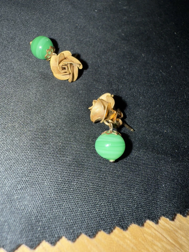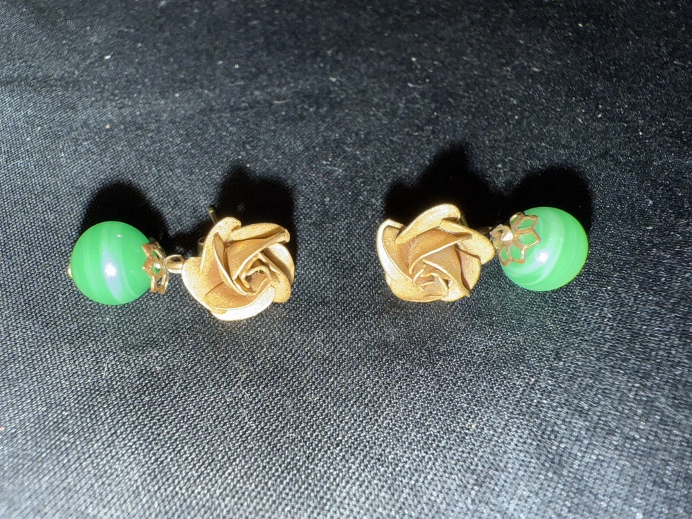 Gold Rose & Green Dangle Earrings. Condition is Pre-owned. Shipped with USPS Ground Advantage.