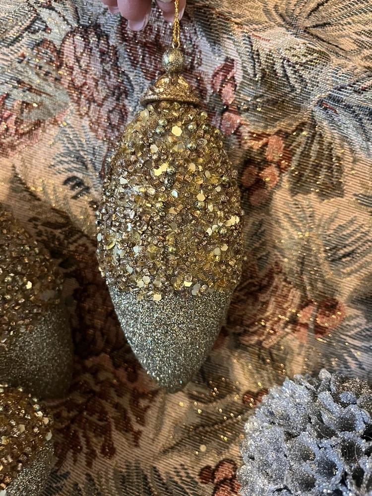 These are beautiful! Woodland themed forest cabin, rustic charm. Had for many years stored however they have not been used. They all sparkle other than the two cute little shabby birds. Many shapes including Acorn, tapered, the gold and silver large ones are maple leaves. All are non shatter. Gold Silver mixed with the brown golden acorn shaped also. Please see the photos. All are in very good condition. There are two that I looked over that has a pinch of glitter however a touch up would do just fine. Probably from being together moved in A box. These are M-L ornaments. The tree skirt is not included for display only. Any questions please ask. There are 13 all together. Boughten at high end store. Happy Holidays! Feel free to make offer if interested.