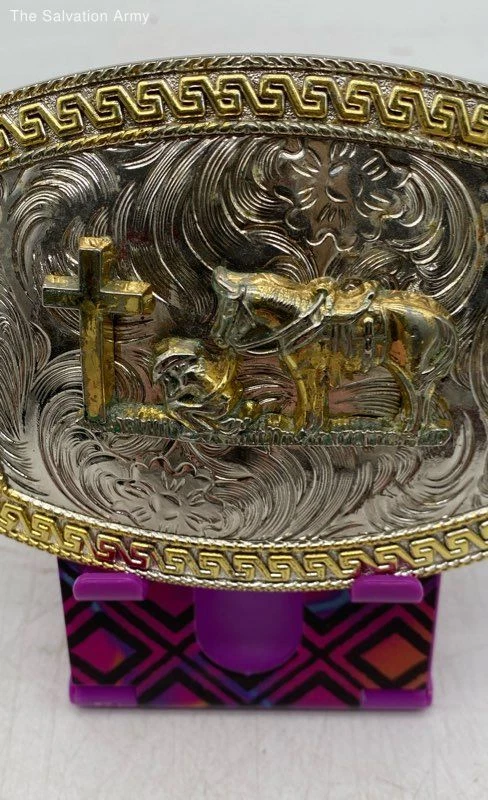 Gold Silver Prayer Cowboy Cross Religious Faith Western Belt Buckle Brand: Unbranded Type: Belt Condition: Good - shows signs of wear Color/Pattern: Gold Silver All net proceeds will support The Salvation Army - Adult Rehabilitation Centers. Thank you for your support! Customer Service Hours: Monday - Friday 8:00am - 4:00pm EST Updated Shipping Policy Starting May 1, 2024 Flat-rate Shipping Service To be eligible for combined shipping, all invoiced items must fall under our flat-rate shipping policy. When orders are combined under the flat-rate shipping policy, larger items will be charged $14.99 for the first item and an additional $6 shipping fee per additional item. Smaller items will be charged $9.99 for the first item a $1 shipping fee will be charged per additional item. Requests for combined shipments must contain less than 20 items per shipment and cannot include items that are sold with calculated shipping. These items include large or bulky items, instruments, artwork, or framed items. Calculated Shipping Service Please note that items that are sold with calculated shipping cannot be combined with other items in the same shipment. This is because these items may include large or bulky items, instruments, artwork, or framed items, which require separate shipping arrangements. Thank you for your understanding.
