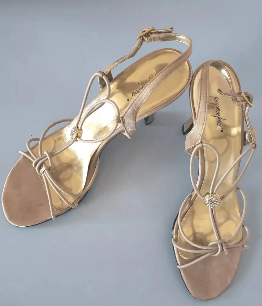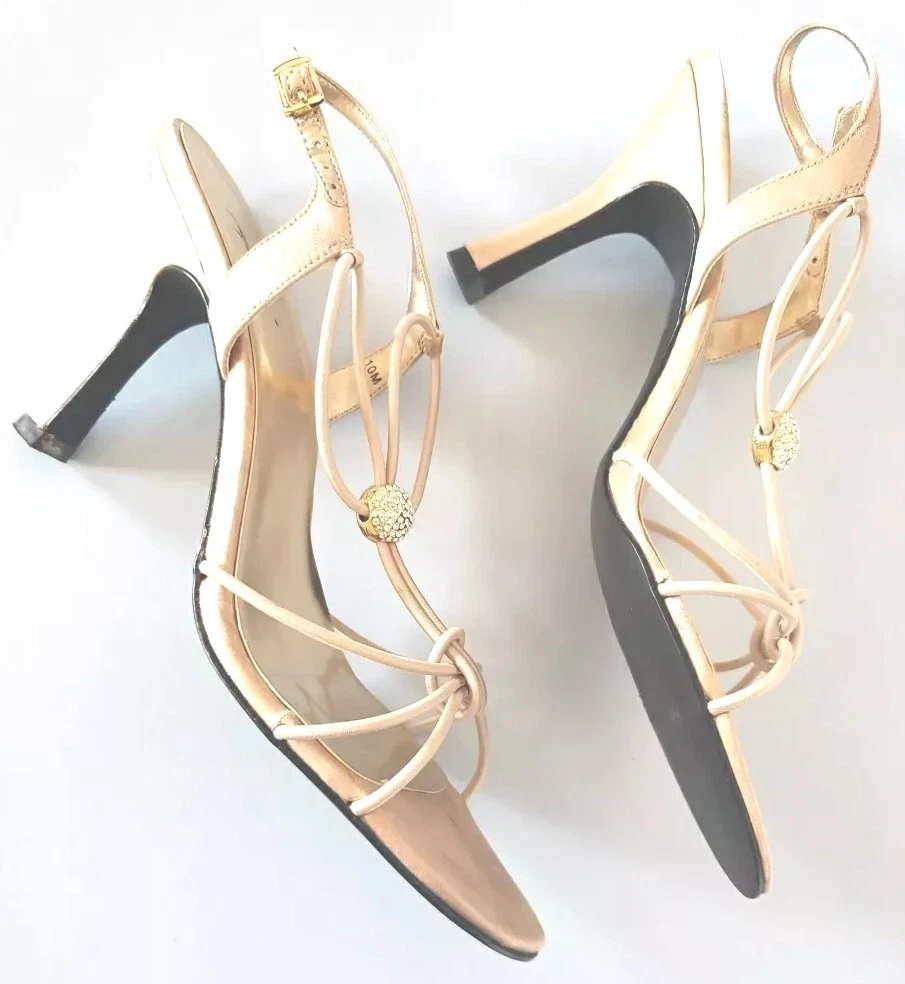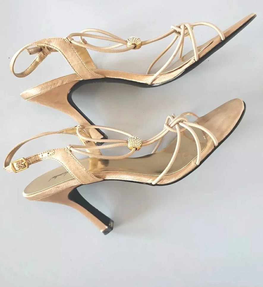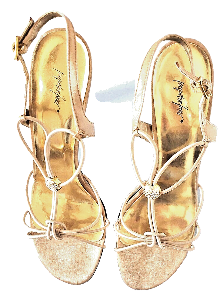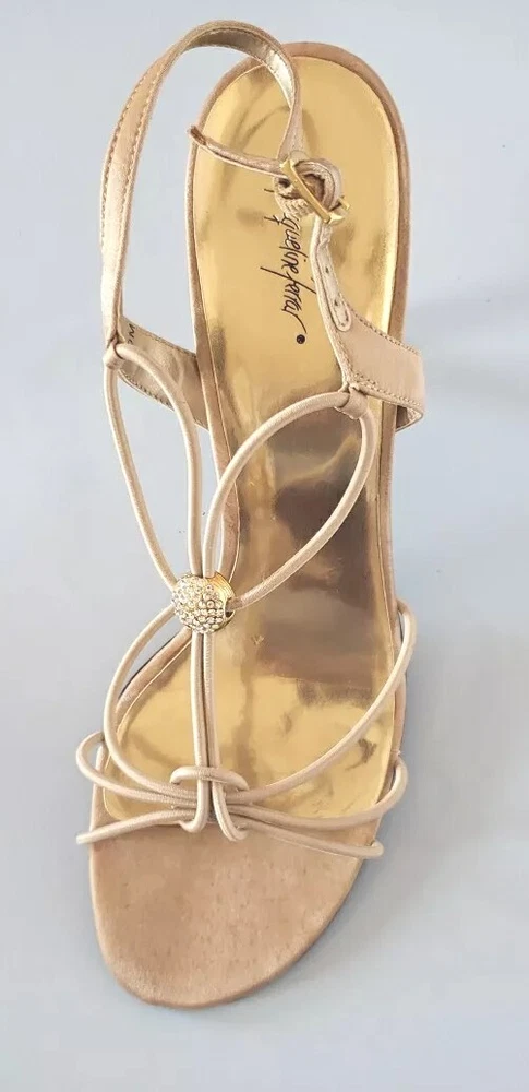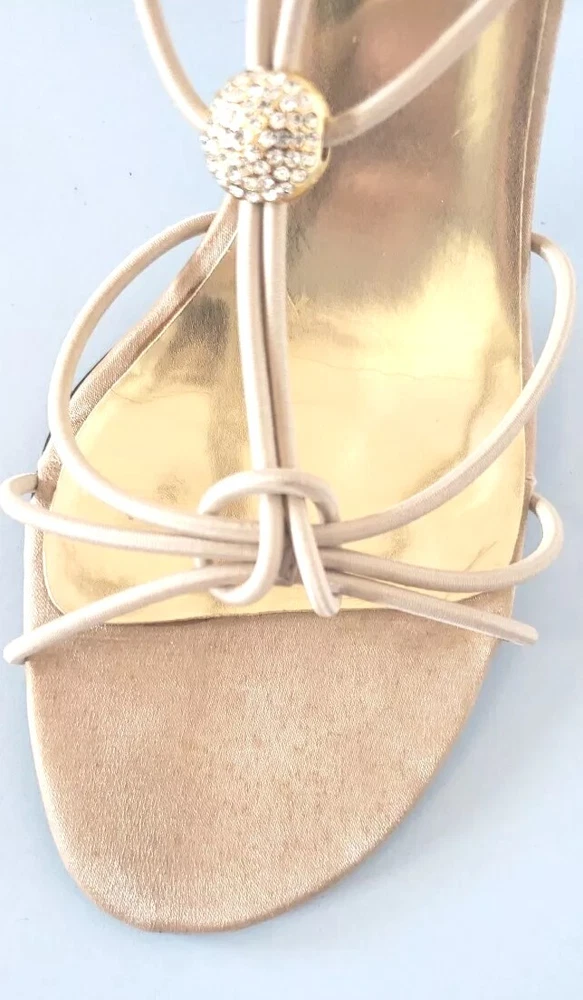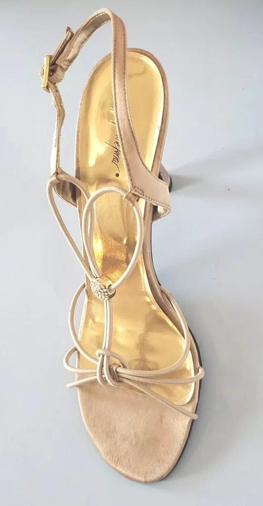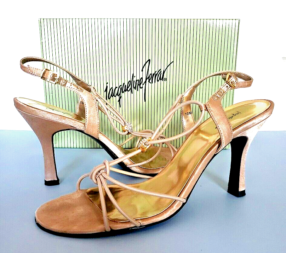 Gold Strappy Statin Heeled Sandals women's Size 10M by Jacqueline Ferrar Rae