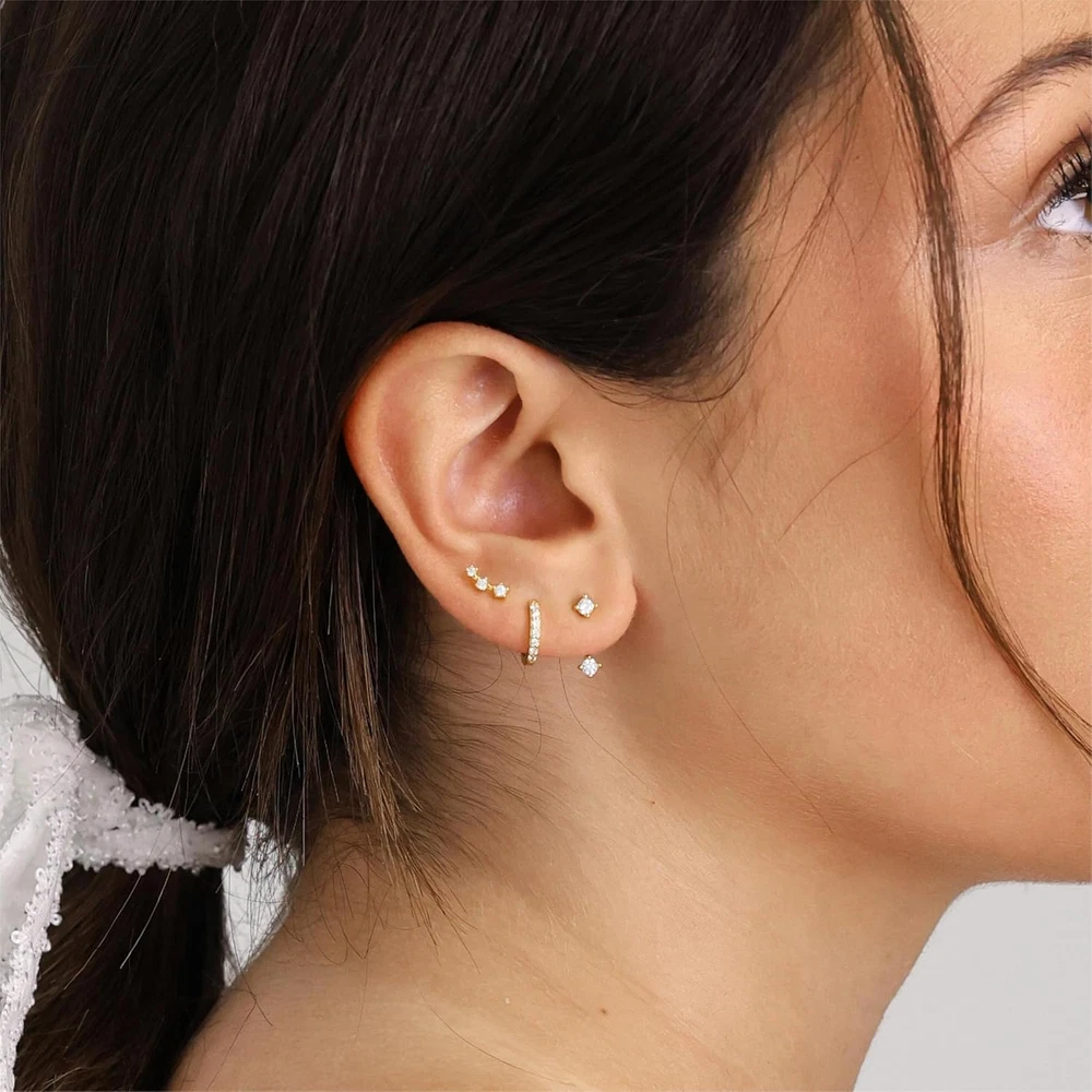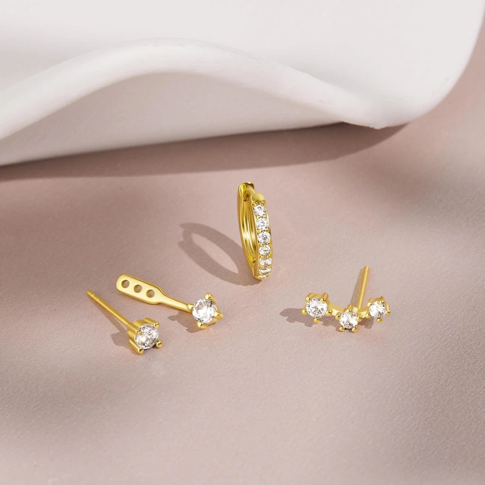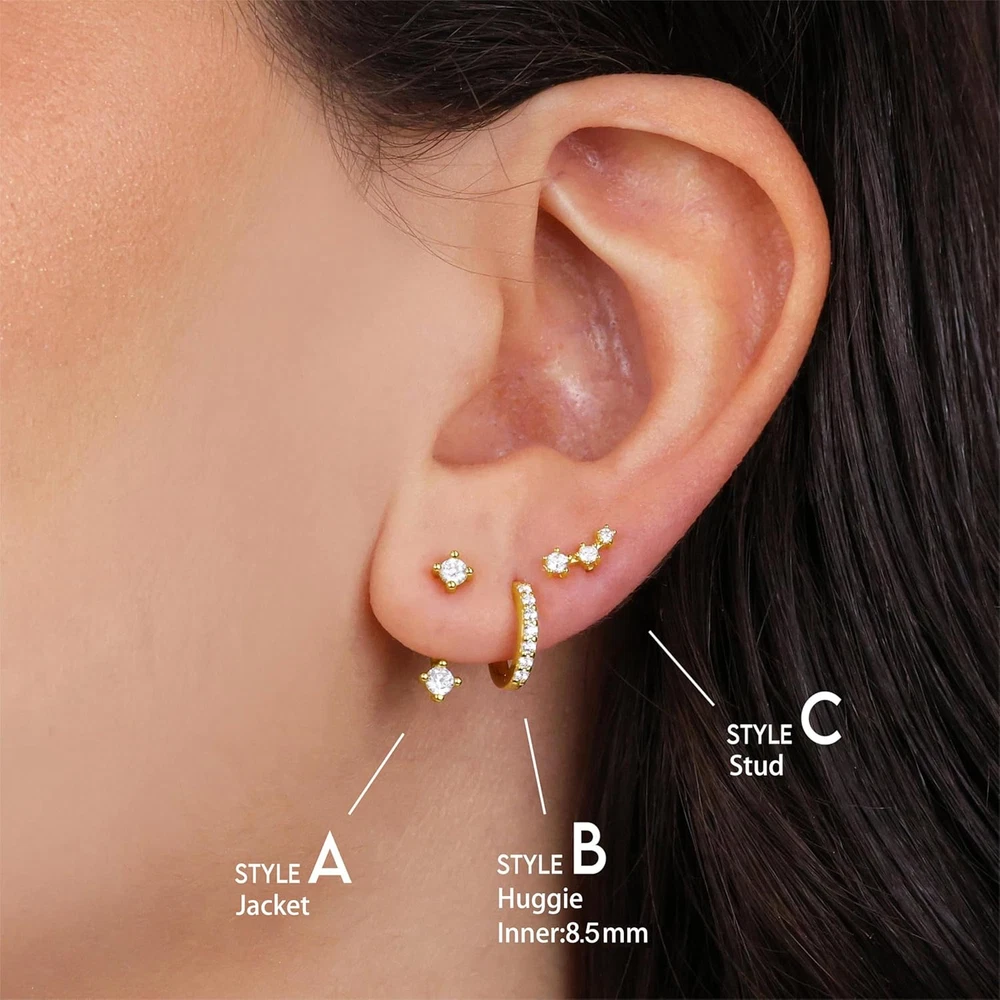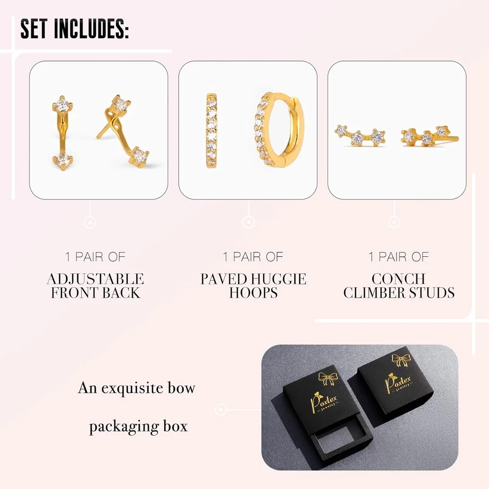 Gold Stud Earrings Set for Women, 3 Pairs Huggie Hoop Jacket Studs Earring Stack